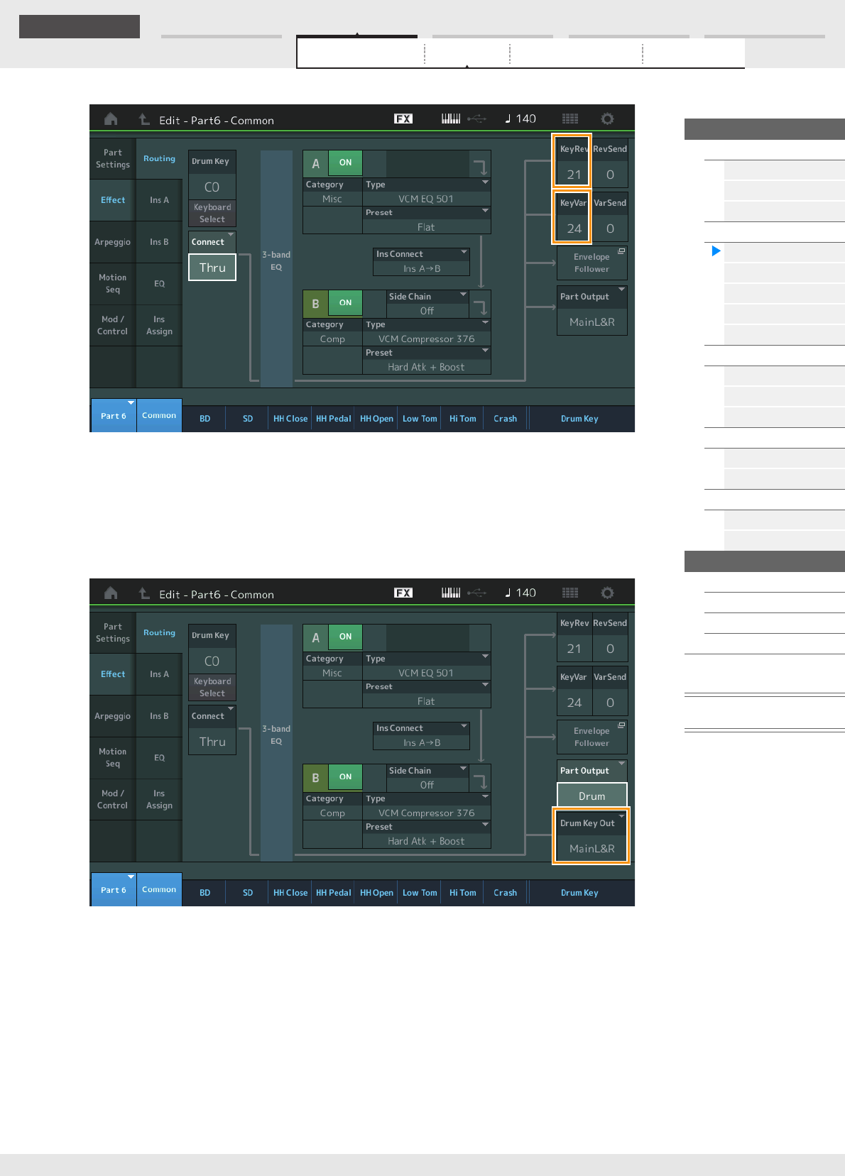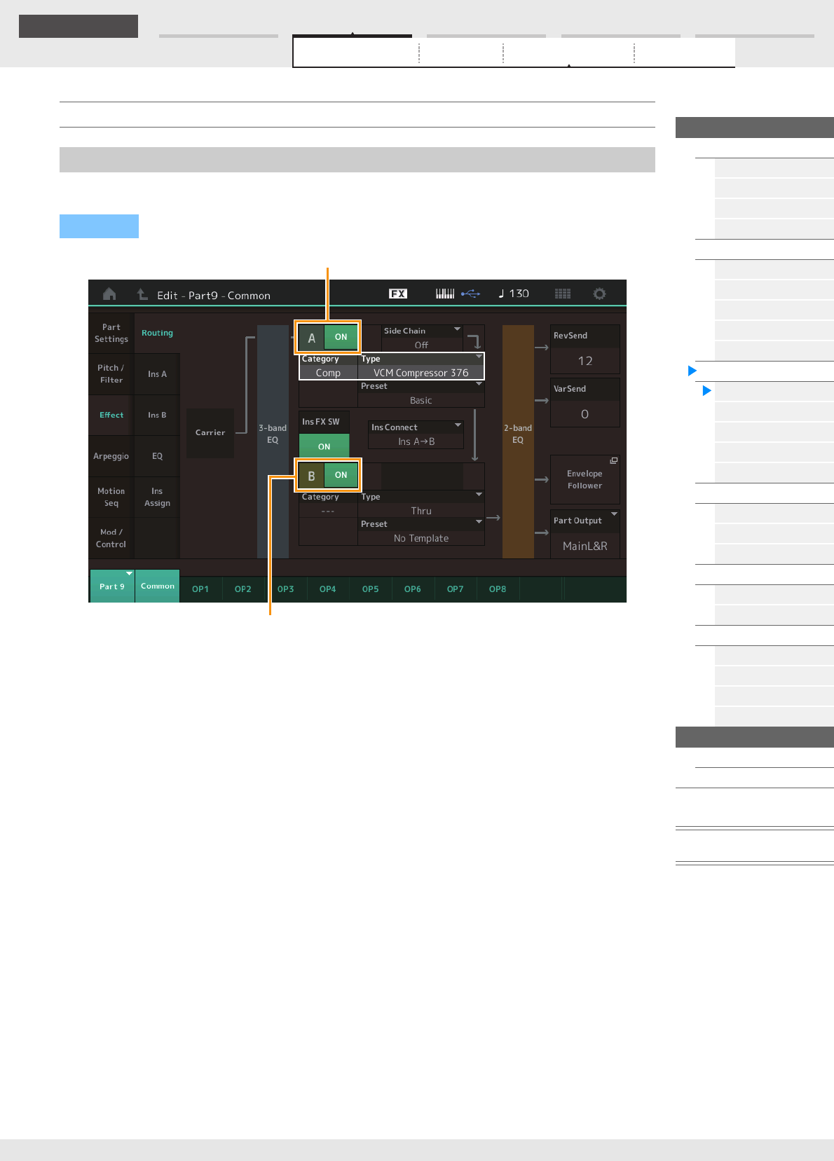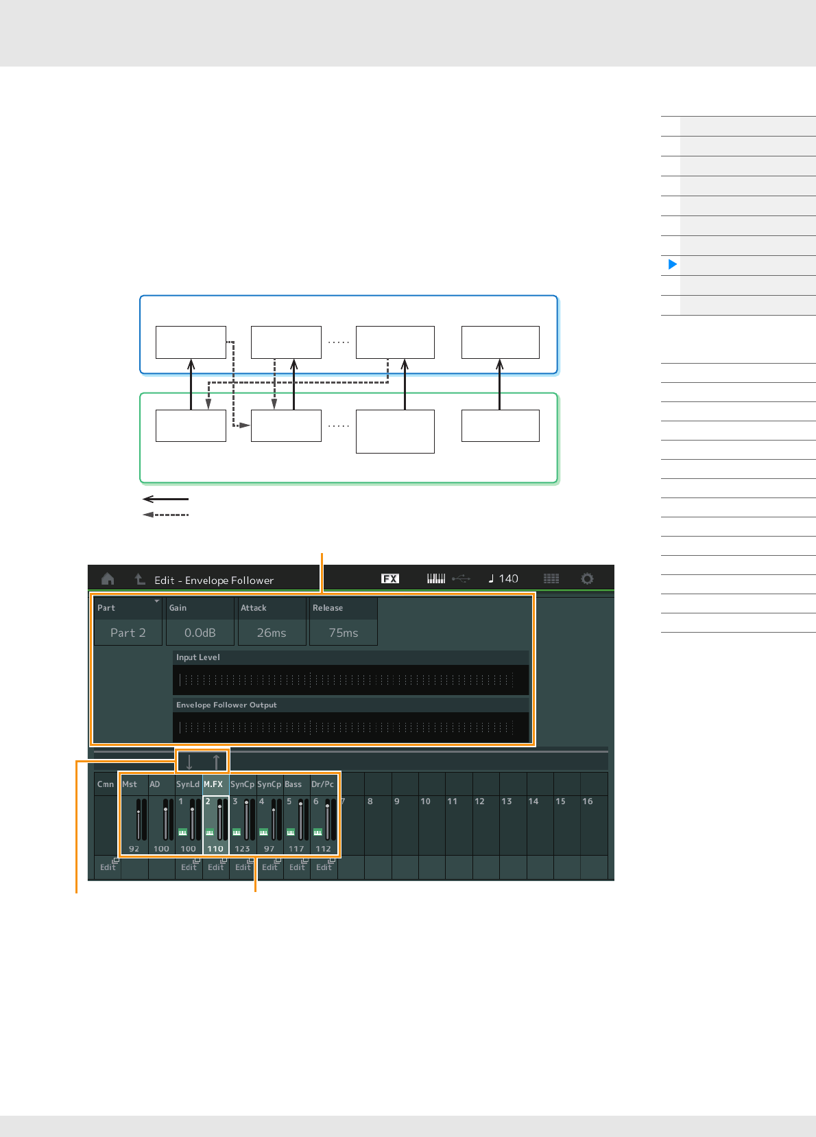 Explains the Part parameters, effect types, effect parameters, and MIDI messages that are used for synthesizers incorporating