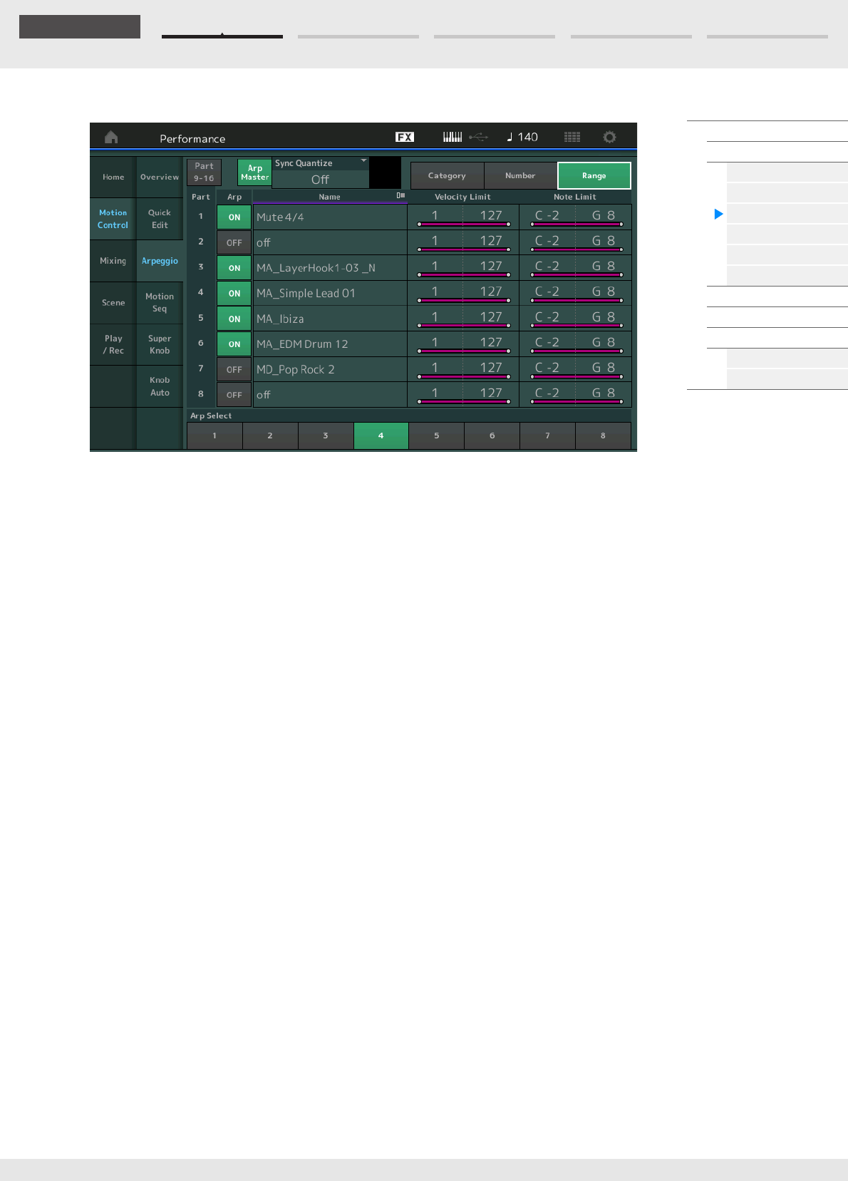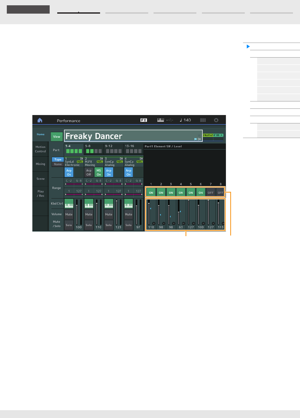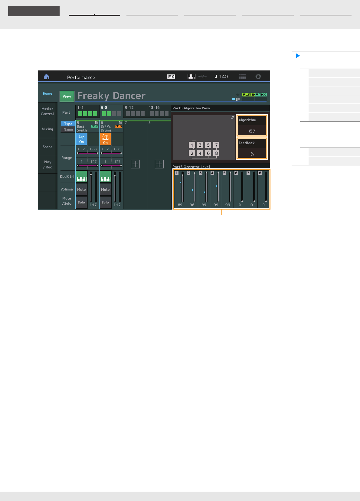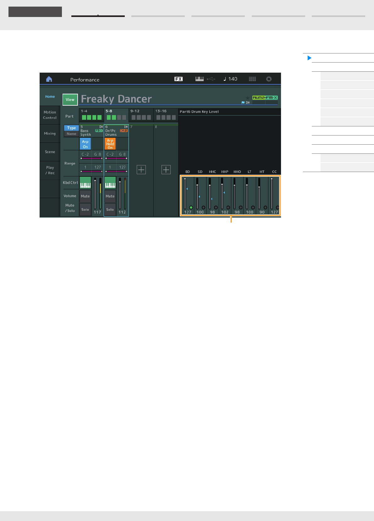 Live Set is a list in which Performances can be freely arranged. Up to 16 Performances can be selected