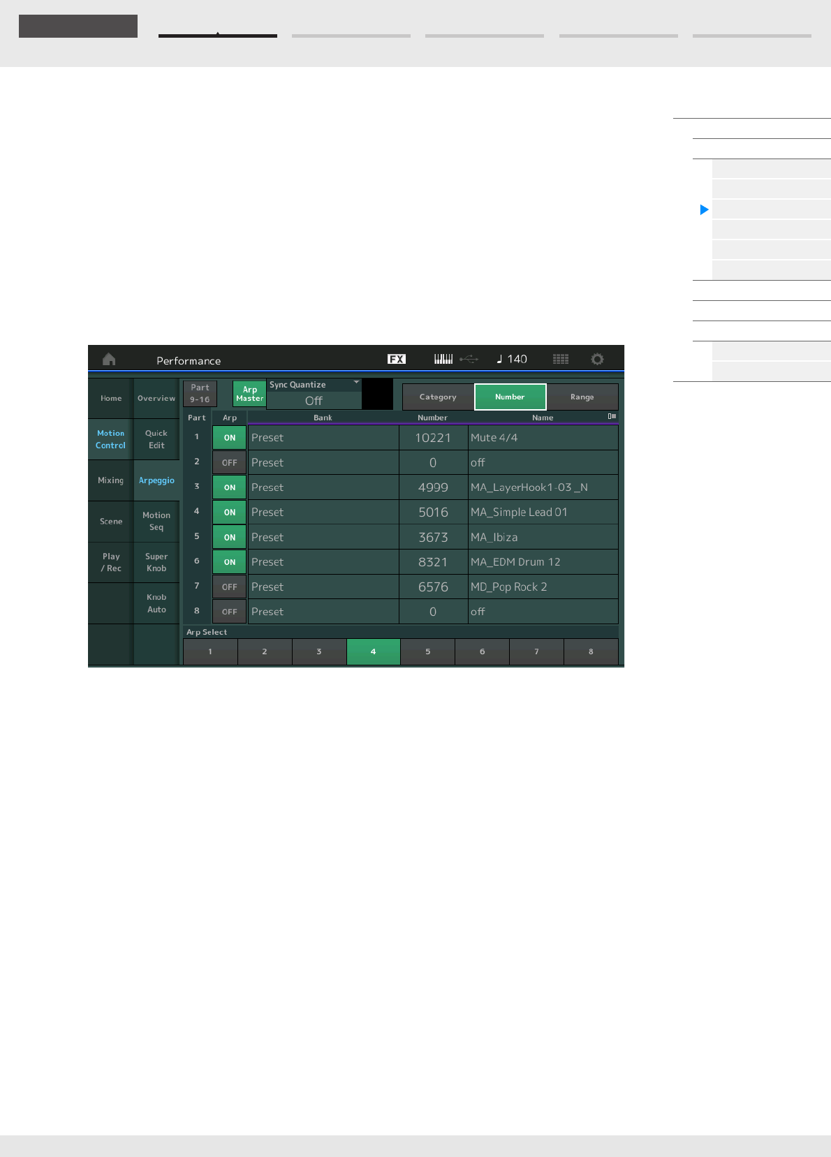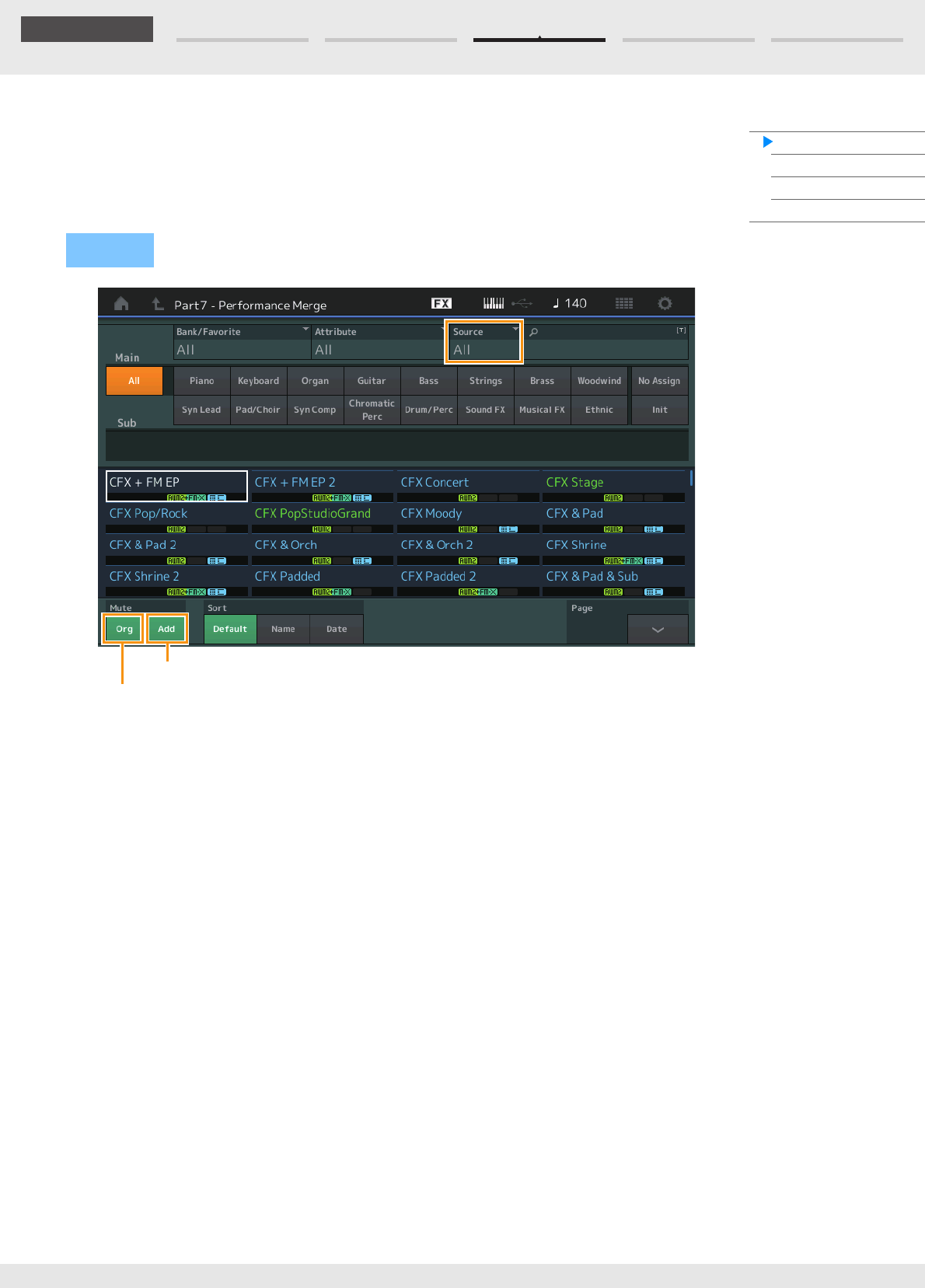 Determines the Live Set Bank for registering Performances. Preset Bank and Library Bank cannot be
