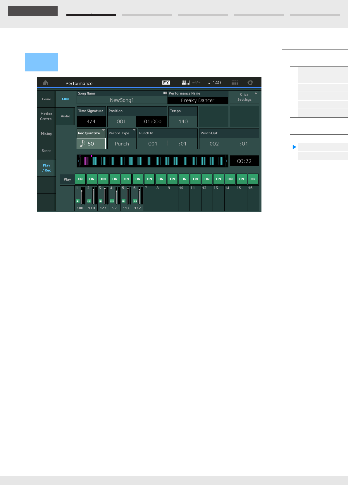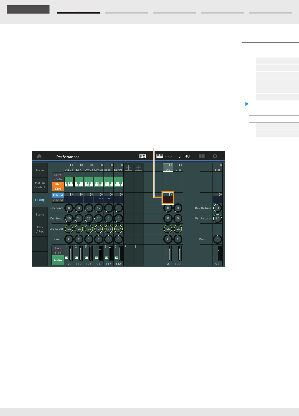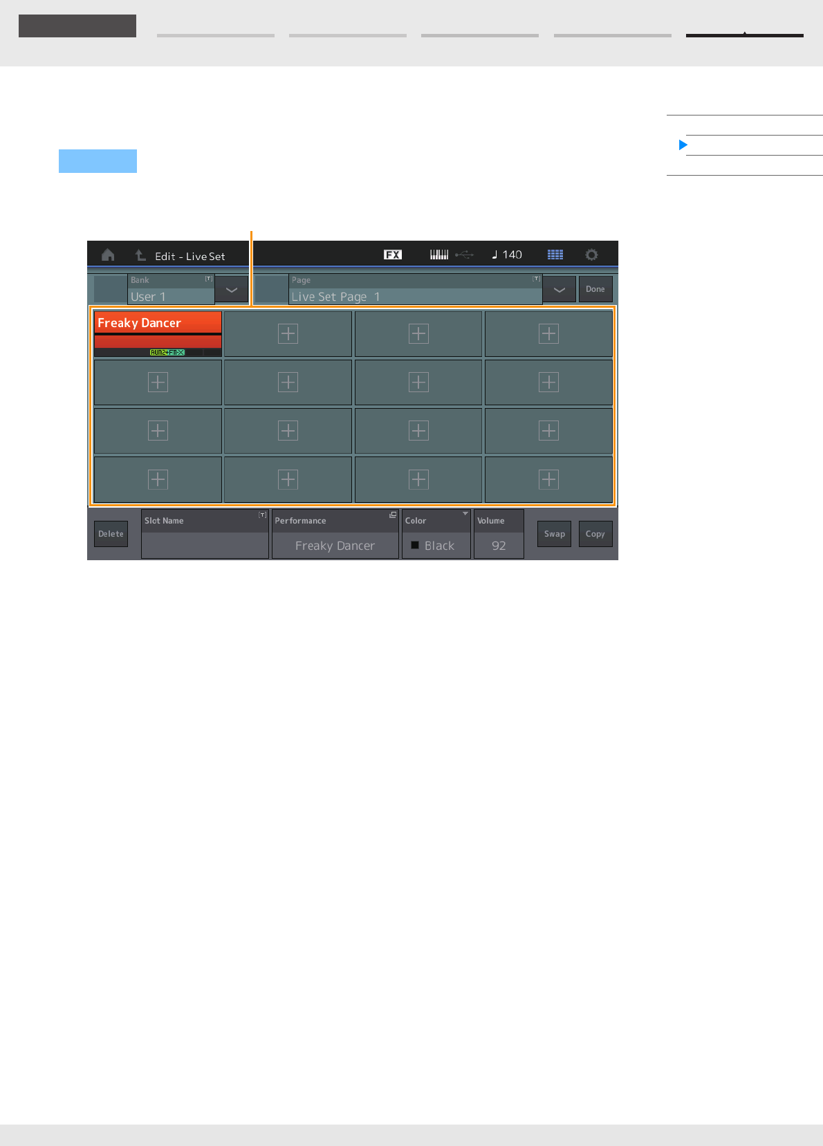 and press the [ENTER] button (or touch the Slot again on the display), the Performance in the slot is