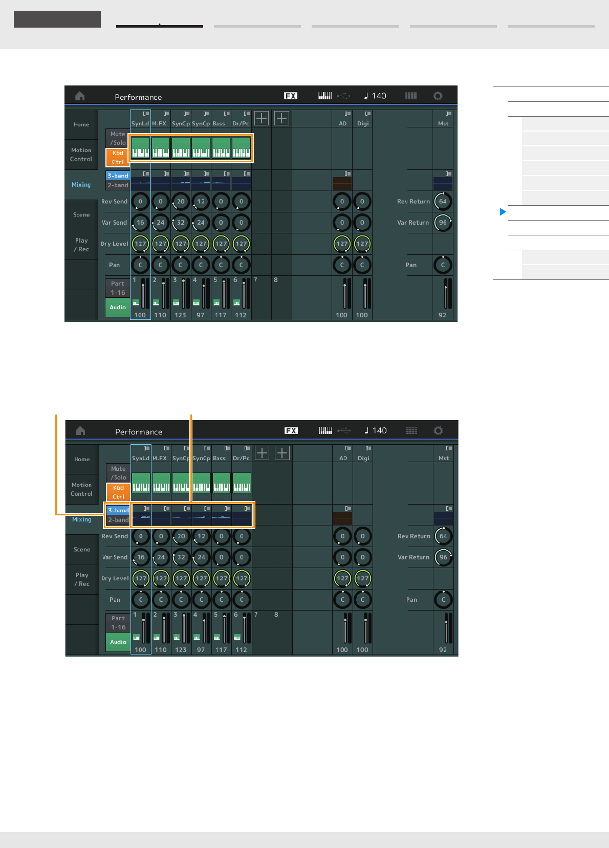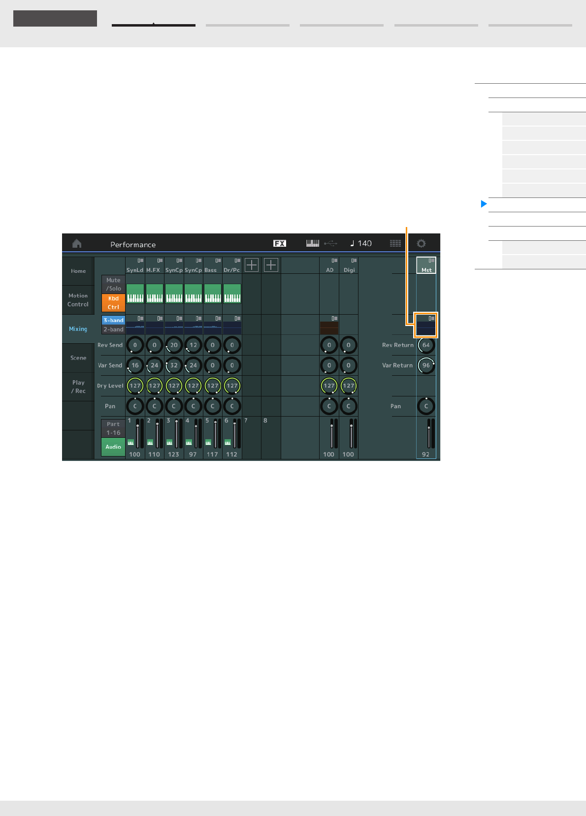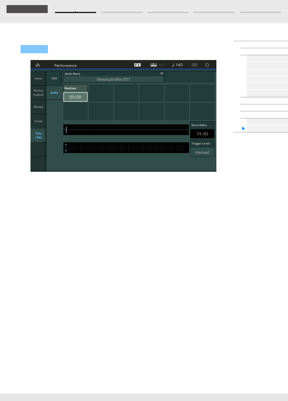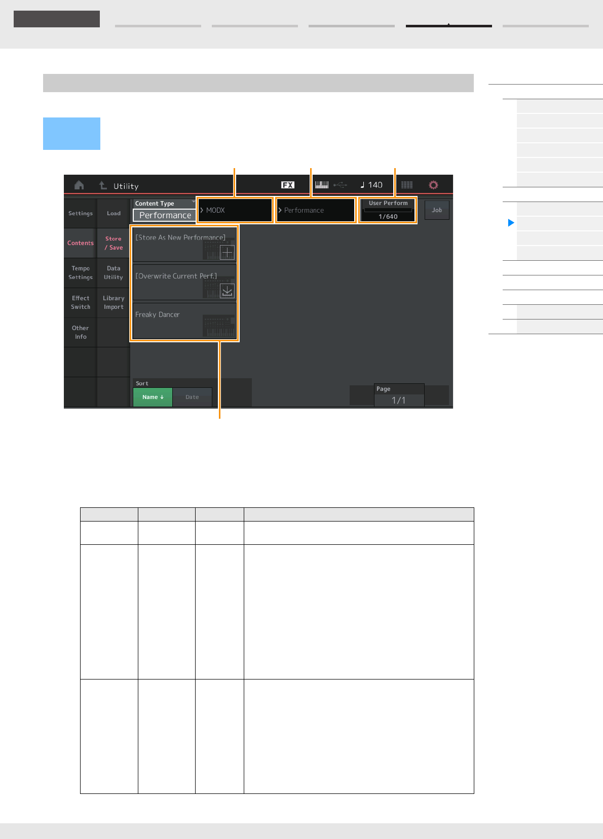 and press the [ENTER] button (or touch the Slot again on the display), the Performance in the slot is