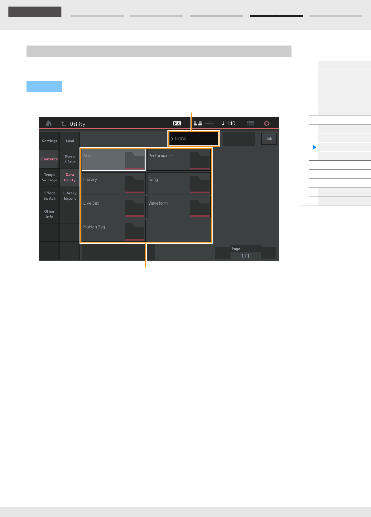 Describes the internal design of your MODX6/MODX7/MODX8 and the various parameters that can be adjusted and set.