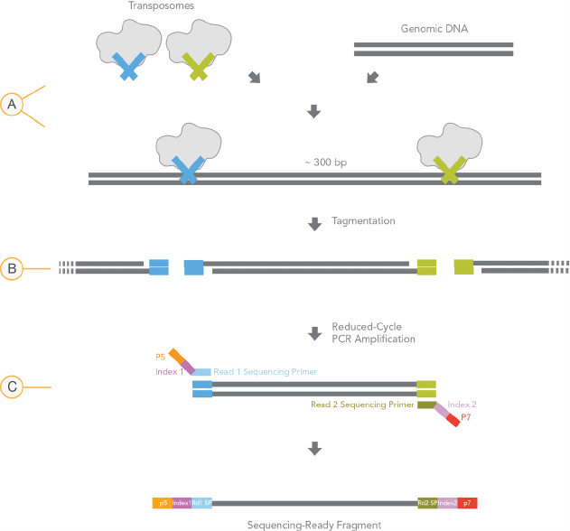 with a single tube Nextera XT tagmentation reaction to generate multiplexed