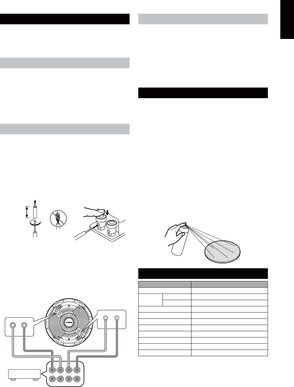 • Do not attempt to clean the speaker with chemical solvents as