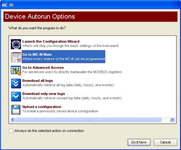 1. SelectGo to MC-III MainfromtheDeviceAutorunOptionsscreen.