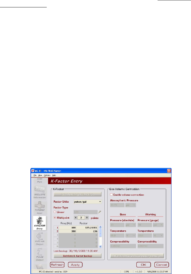 3. IntheGasVolumeCorrectionsectionoftheK-FactorEntryscreen,