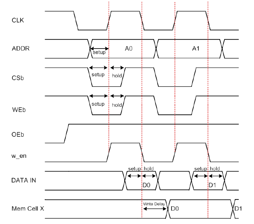 Currently, OpenRAM supports simple 1 read/write port synchronous memories, but it will be