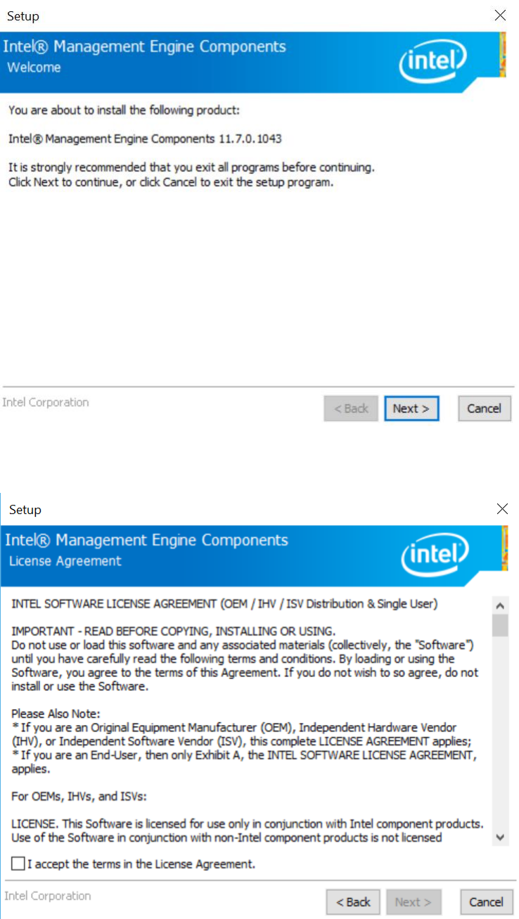 4. From the INTEL SOFTWARE LICENSE AGREEMENT page, select I accept the terms in the