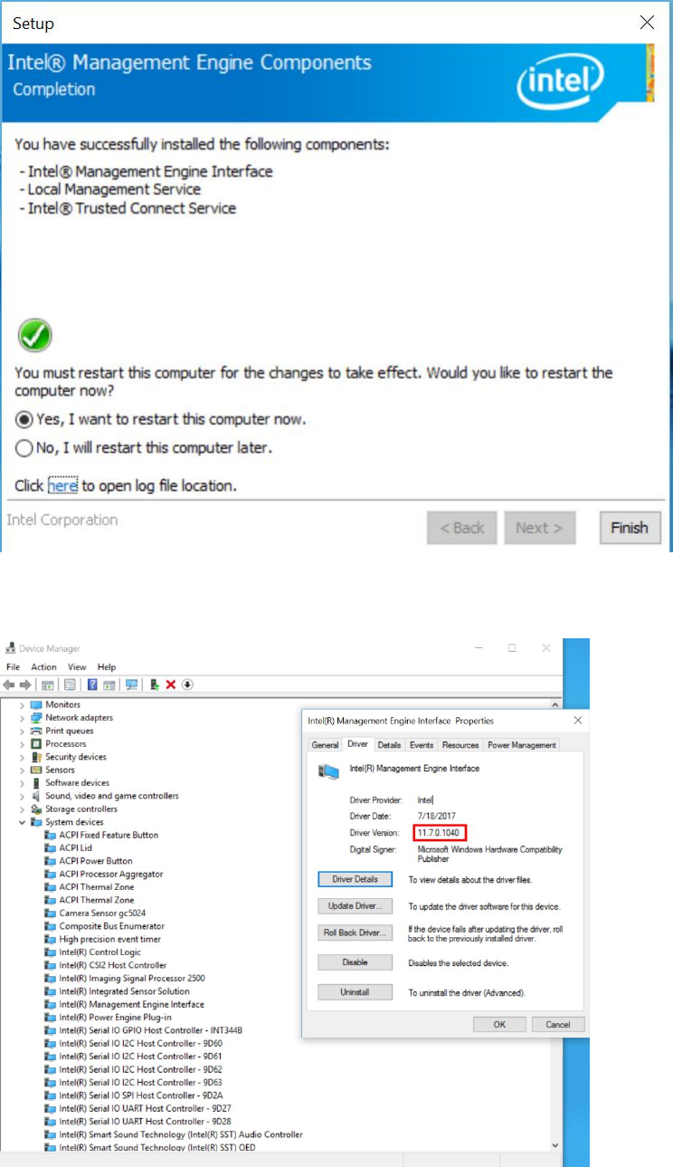 If the version number is 11.7.0.1040, you have successfully updated your Intel ME driver.