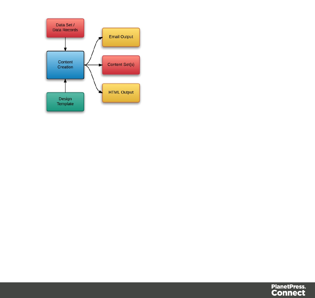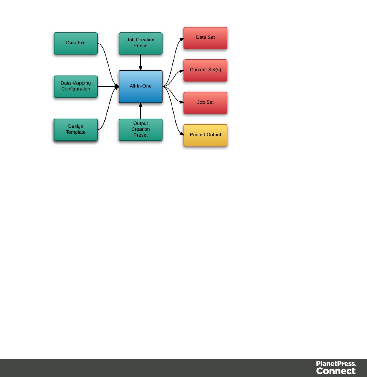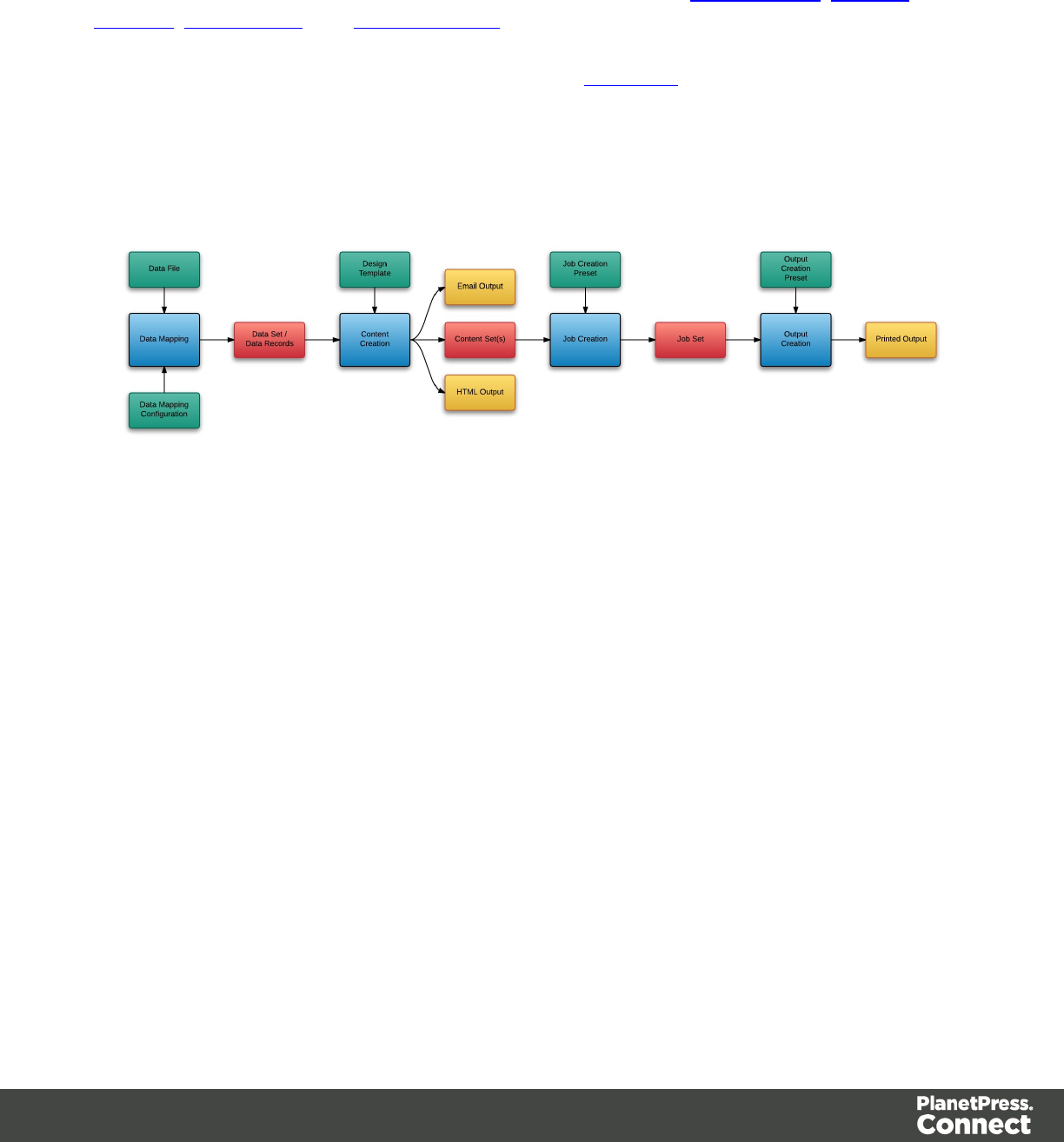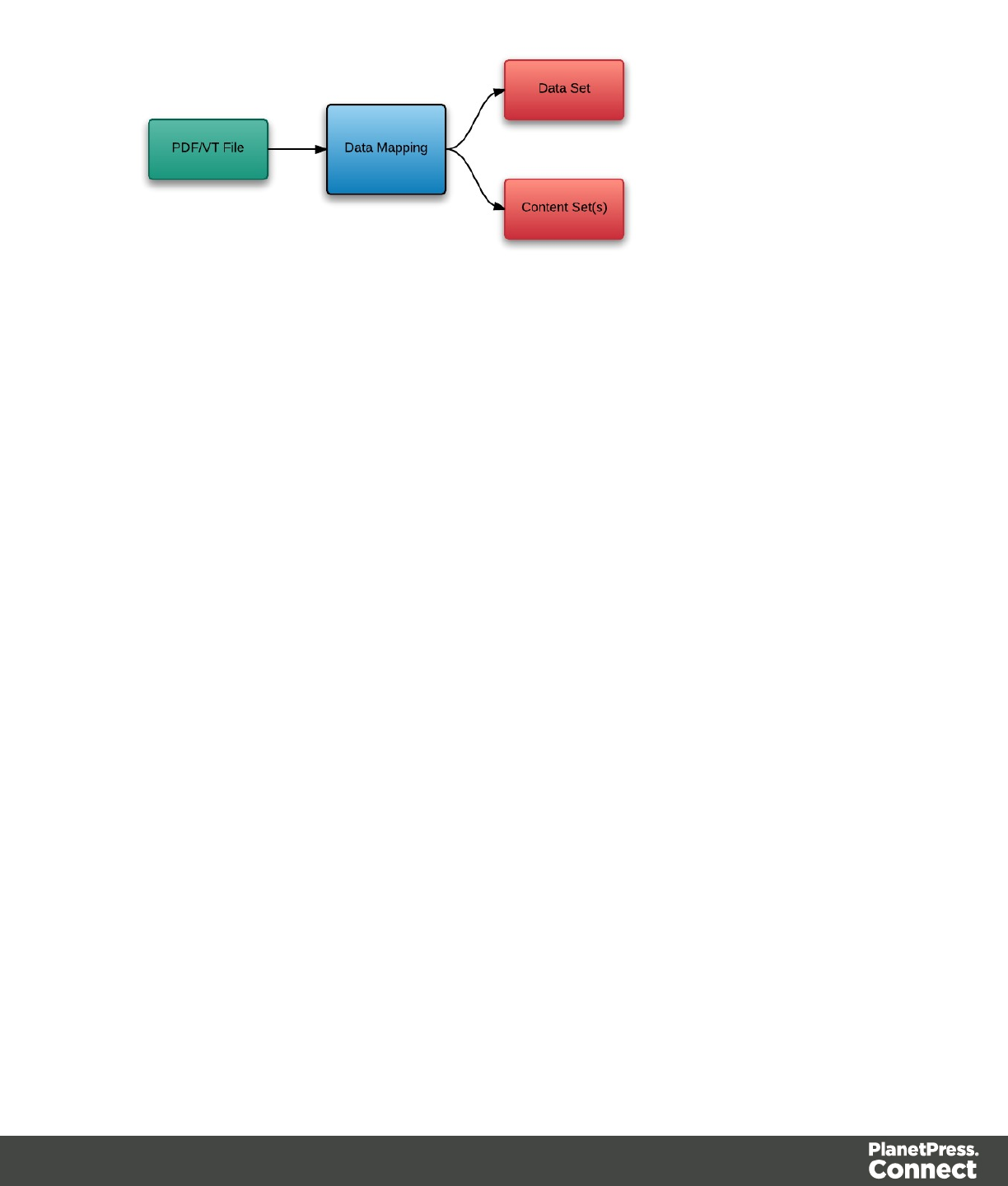 In PlanetPress Connect there are four main workflow processes: Data Mapping,Content