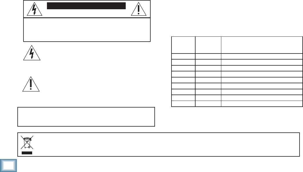 ATTENTION: POUR EVITER LES RISQUES DE CHOC ELECTRIQUE, NE PAS ENLEVER LE COUVERCLE.