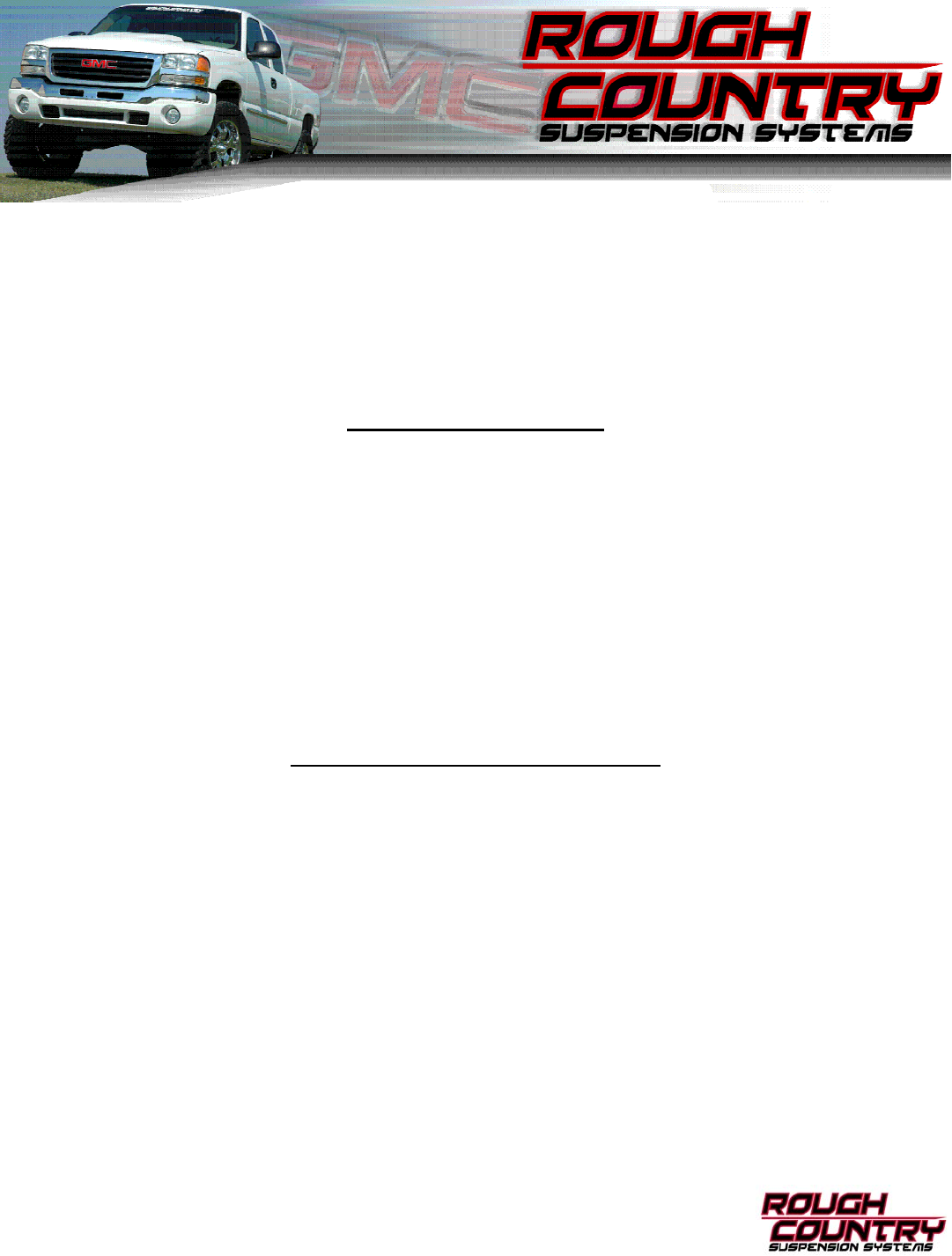 We hope installing your Rough Country lift kit is a positive experience. Please note that variations in construc-