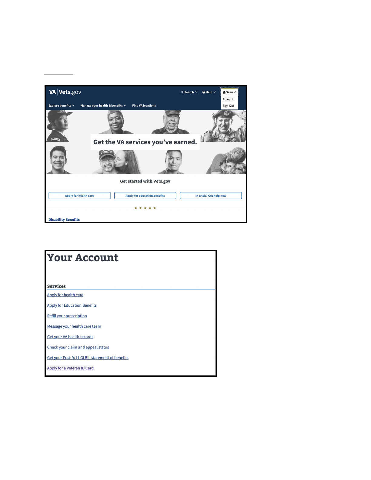 Option 1: Vets.gov >> [user