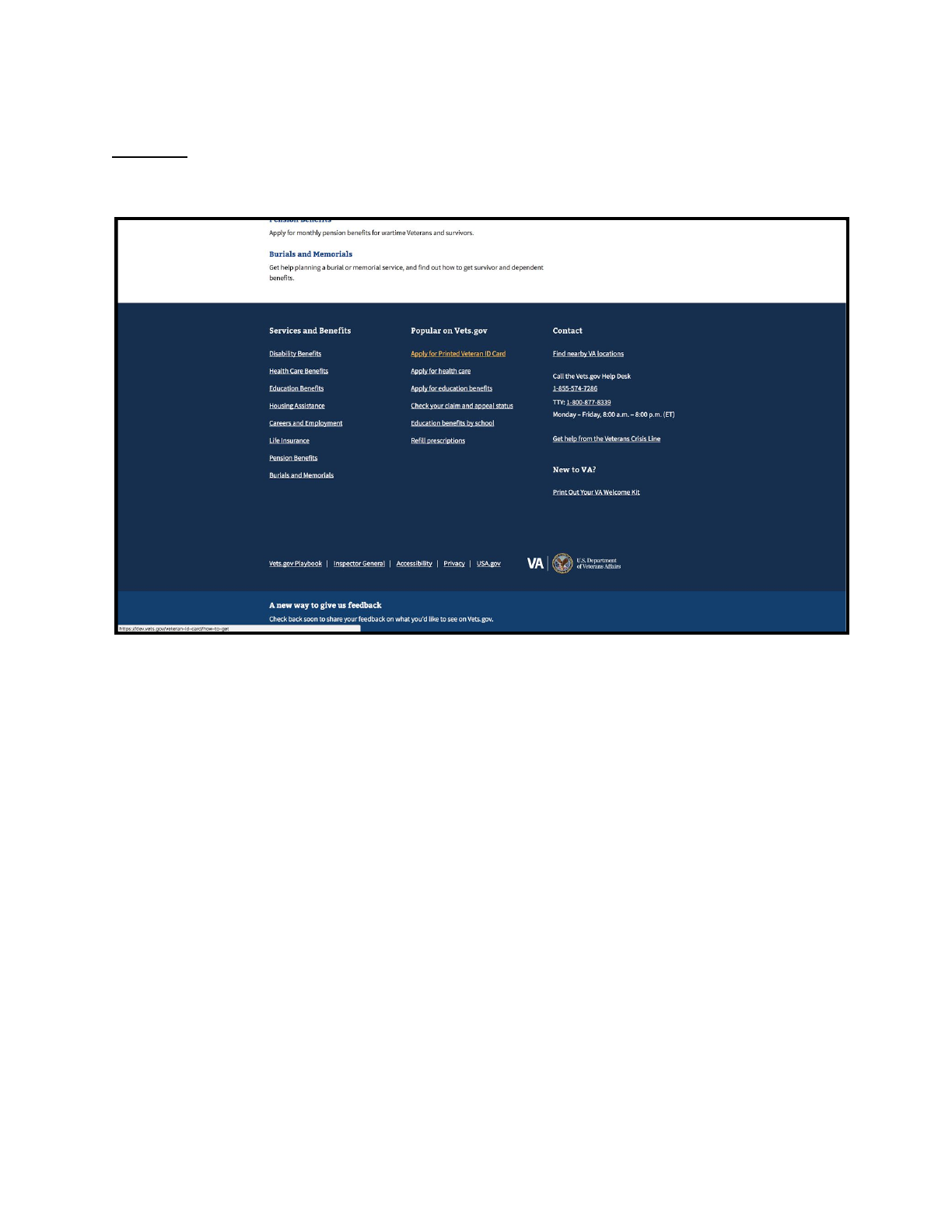 Option 2: Vets.gov >> Footer (Popular on Vets.gov) >> Apply for Printed Veteran ID