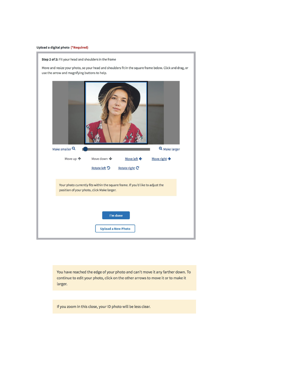 Users can go back and change their photo or edit the photo they’ve already uploaded by clicking on those