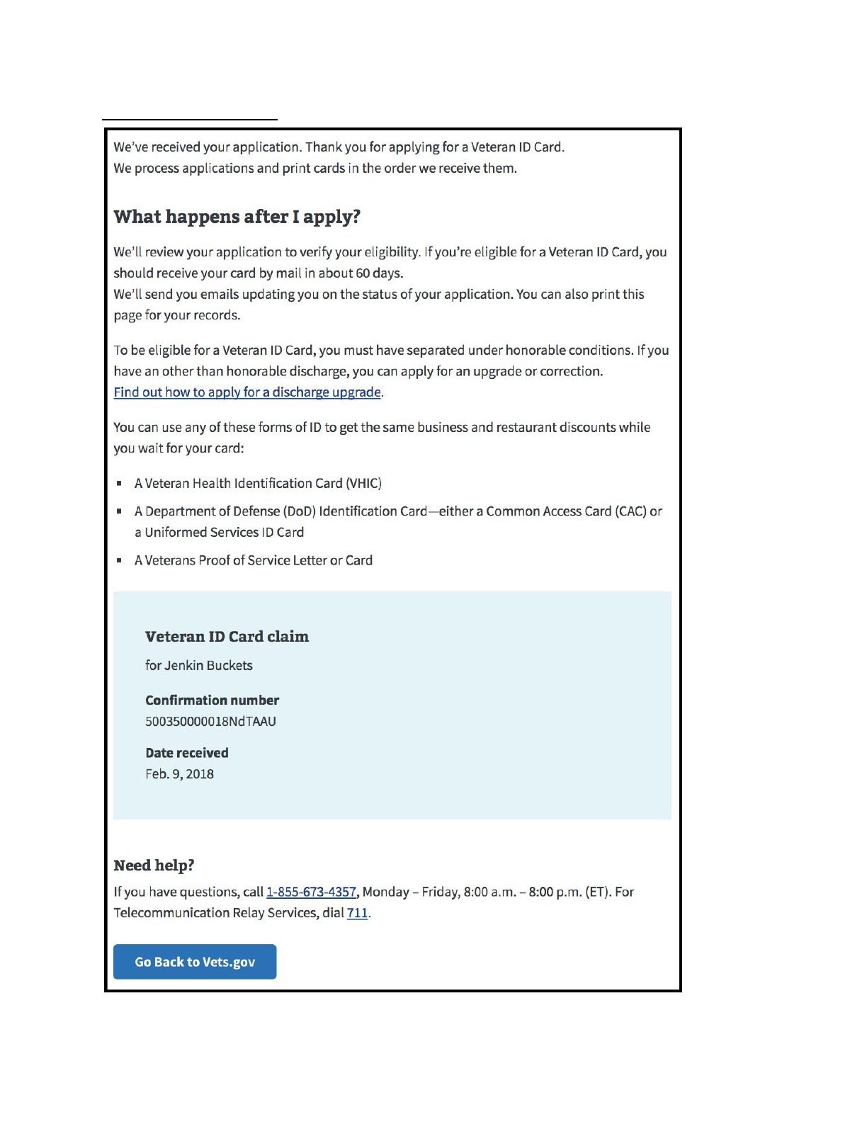 An application for a printed Veteran ID Card that helps Veterans