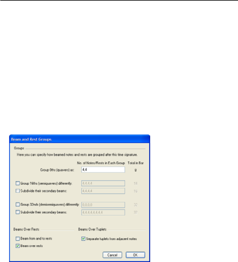 - Beaming eighth notes (quavers) in 4s