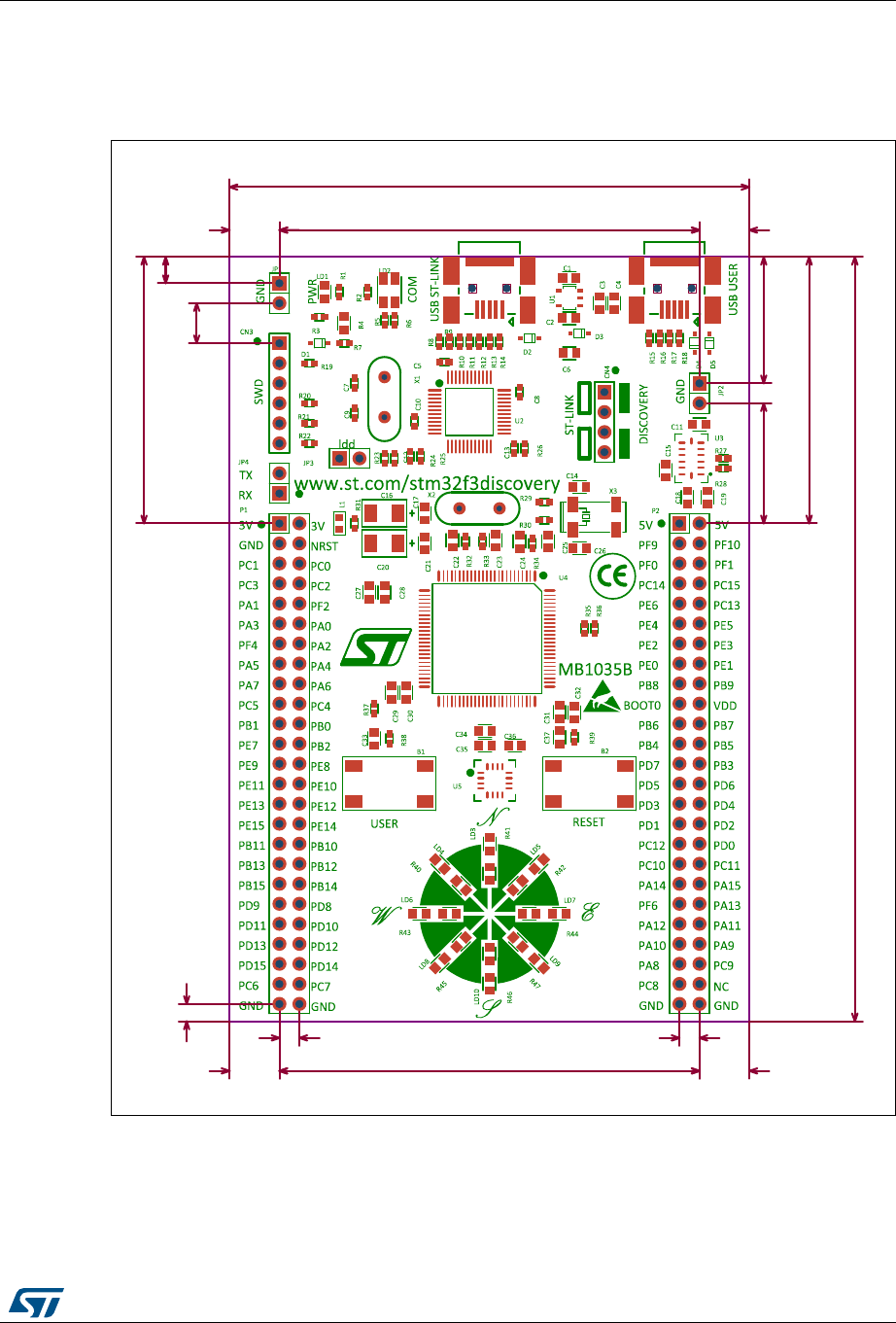 - 6.1 The STM32F3DISCOVERY discovery board mechanical drawing