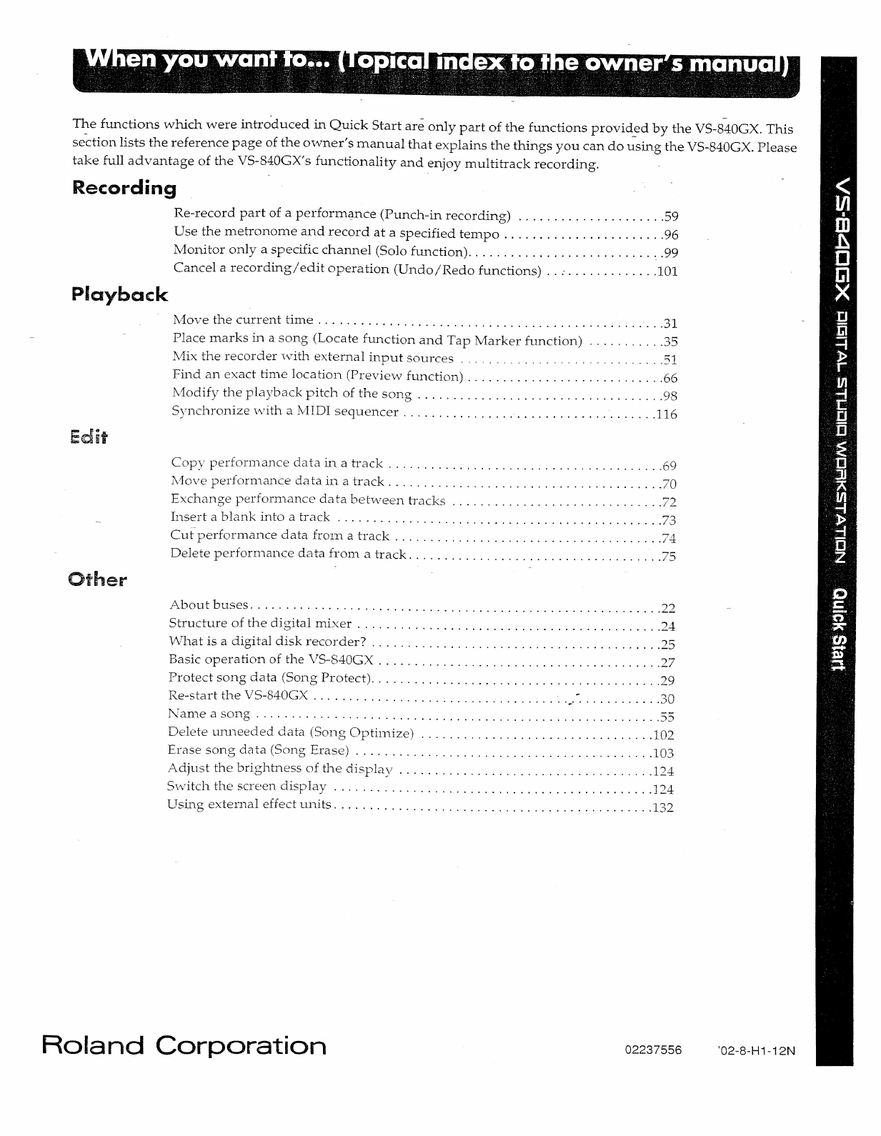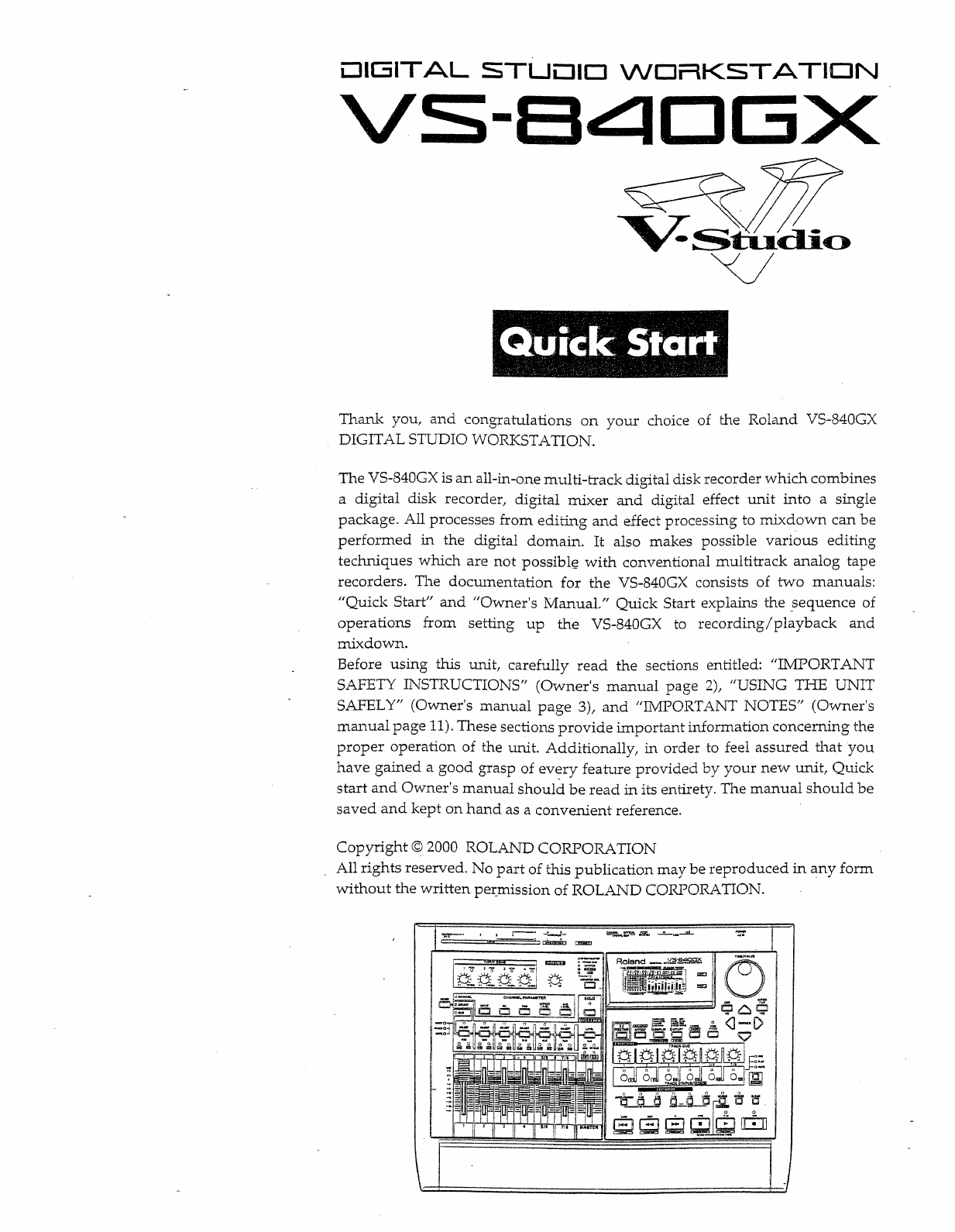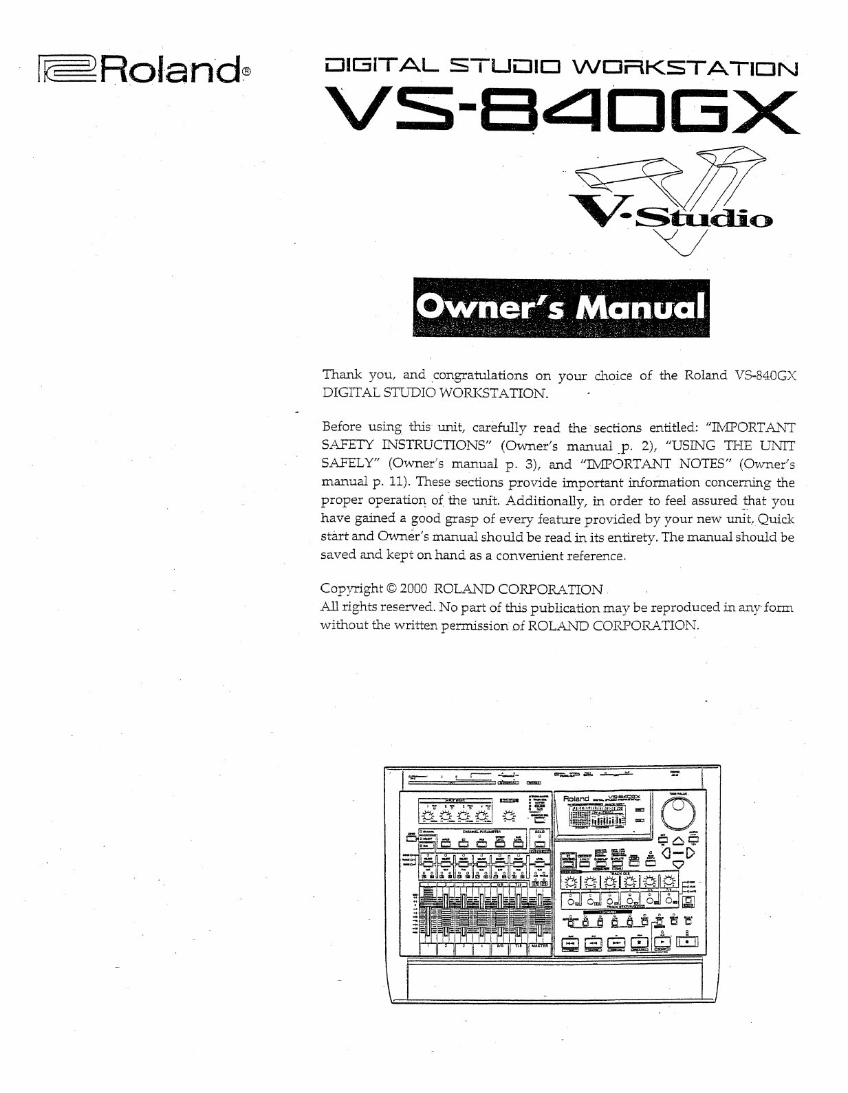 User Manual: Pdf Roland Corporation VS-840GX Owner's Manual Roland Corporation - VS-840GX - Owner's Manual