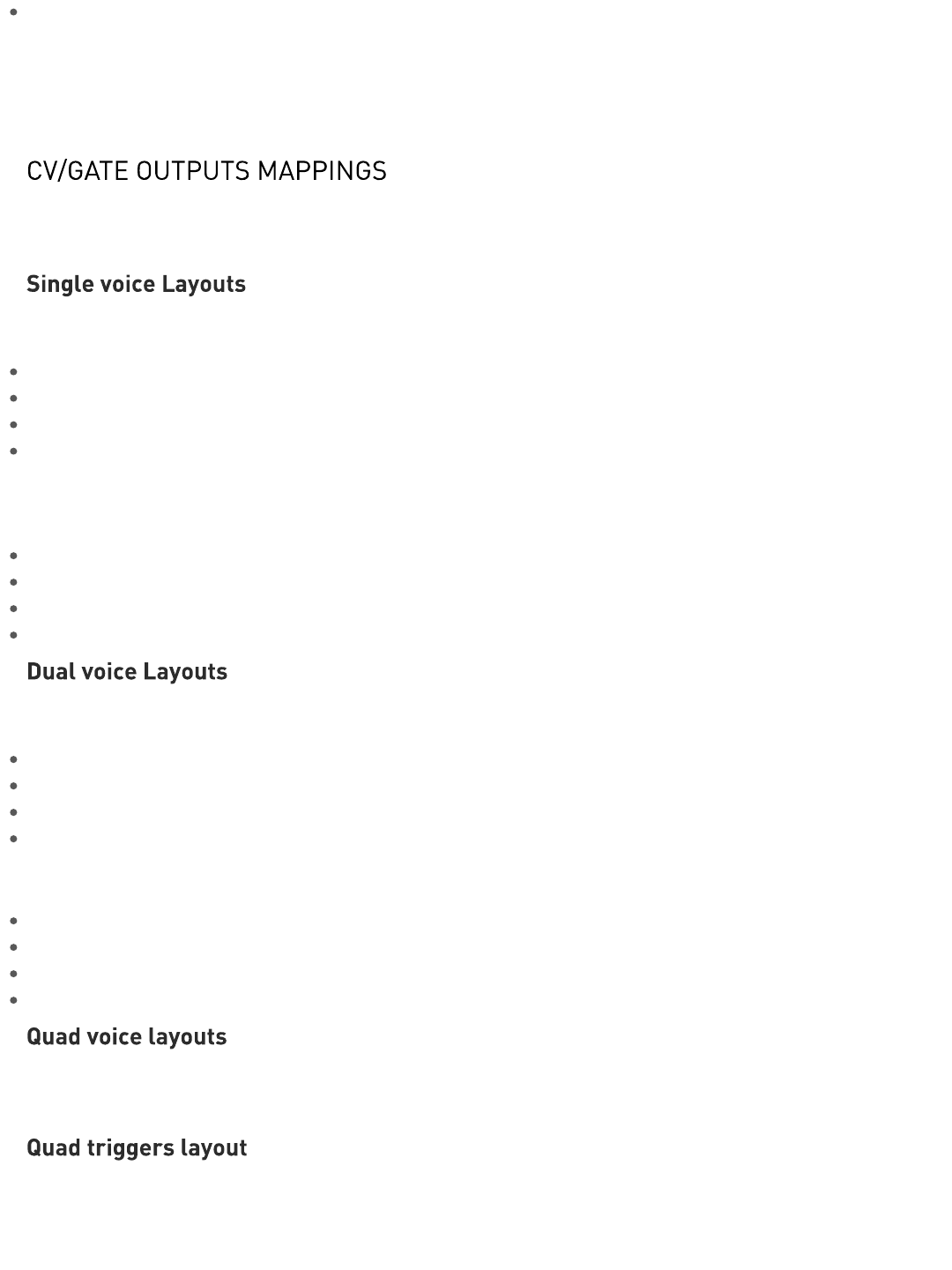 In single-voice layouts (1M, and 2>), the 4 CV outputs are assigned to:
