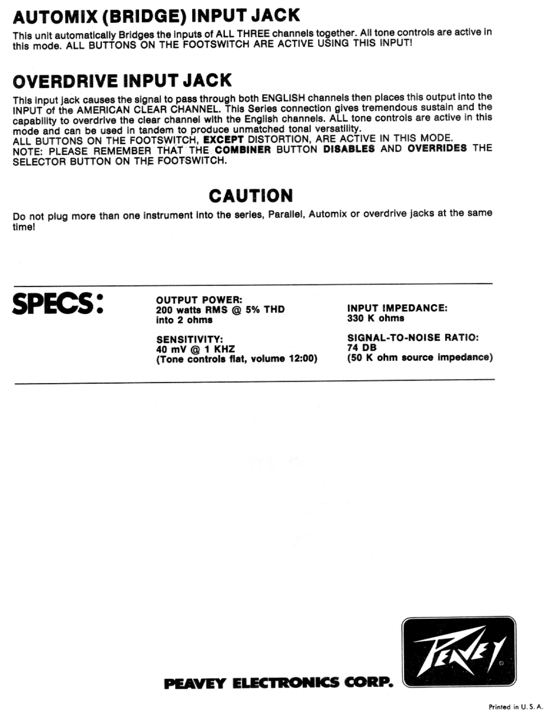 Peavey Roadmaster Users Manual