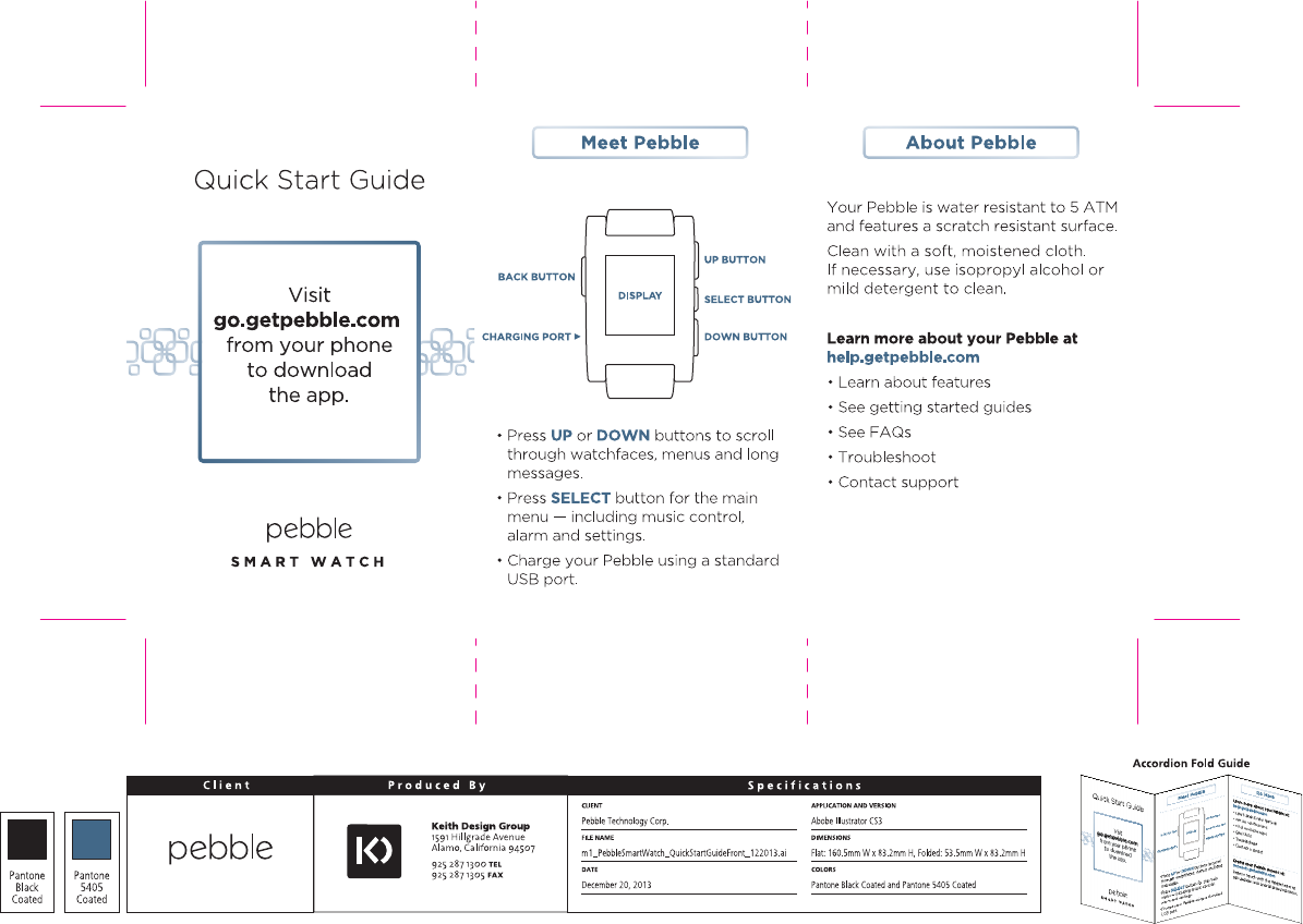 Pebble Technology PEBBLE-WATCH2 Smartwatch User Manual m1 PebbleSmartWatch QuickStartGuideFront 122013