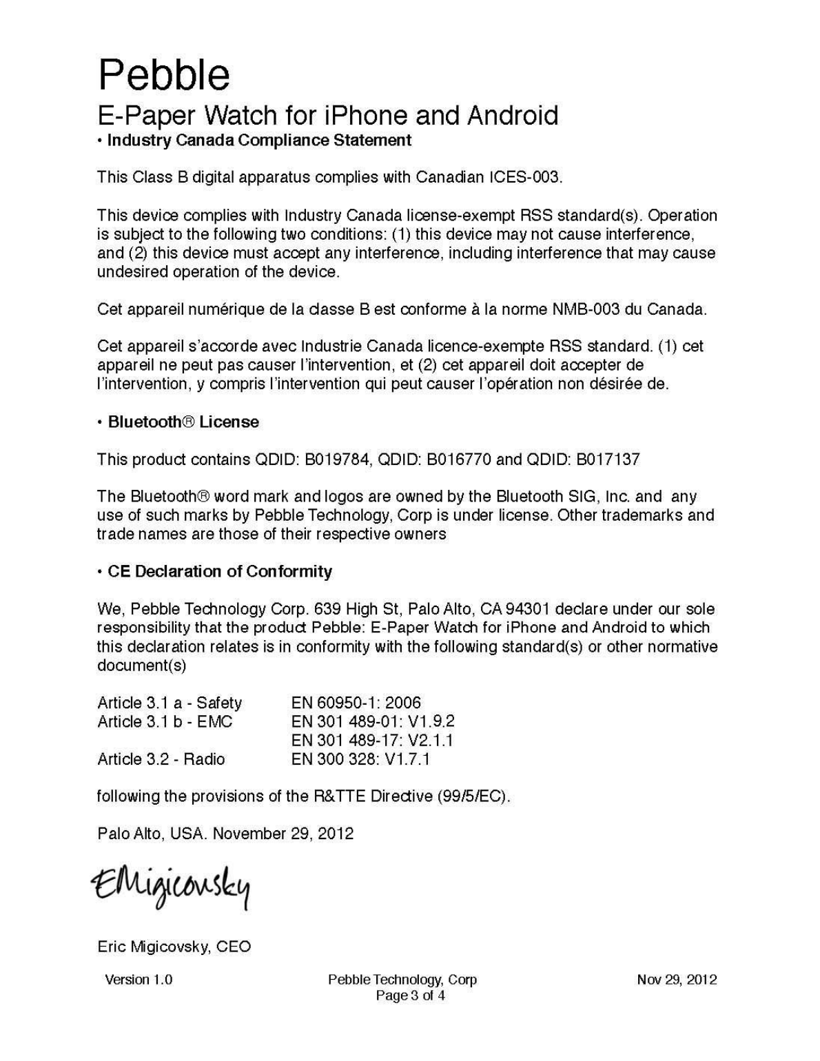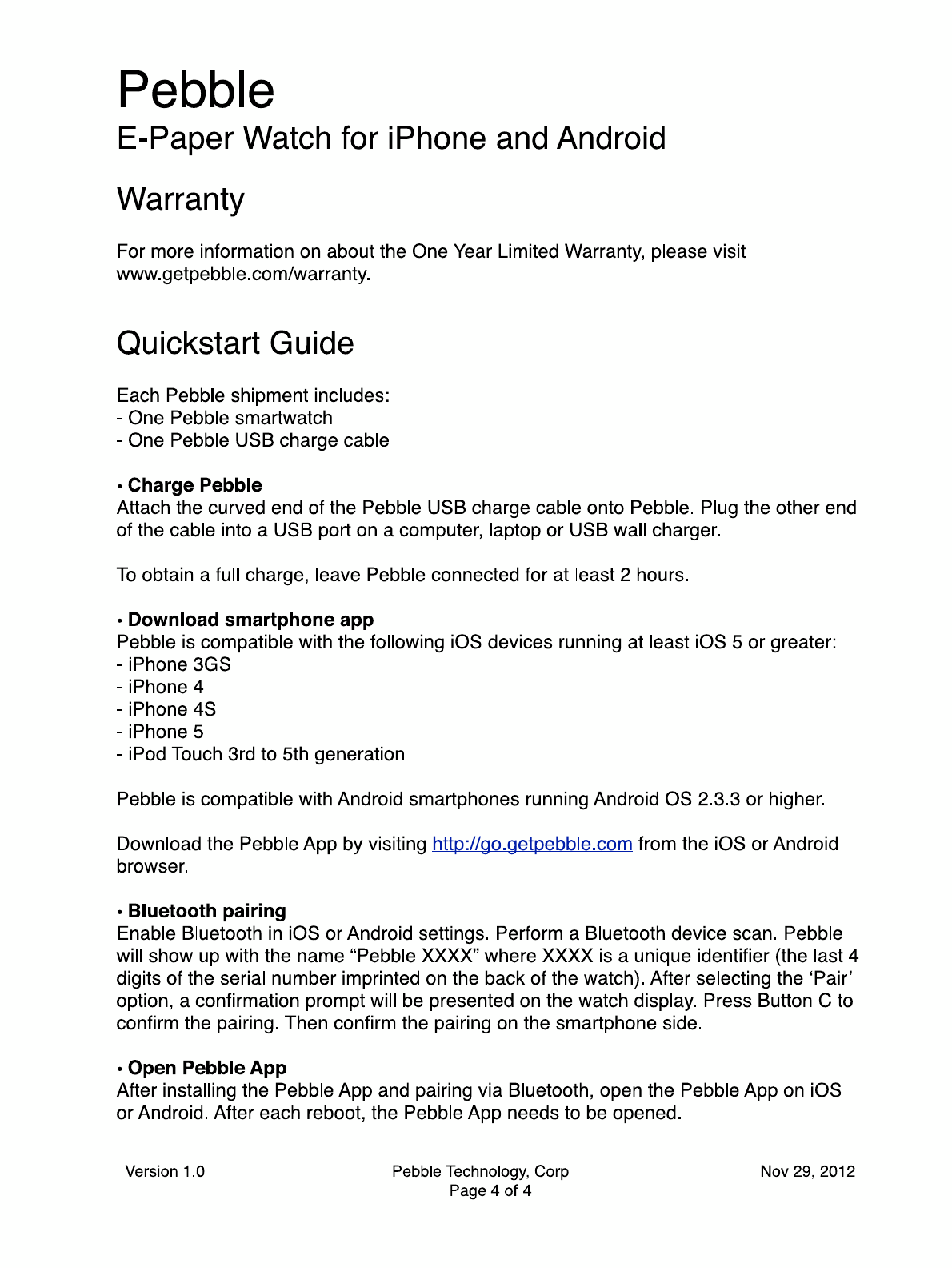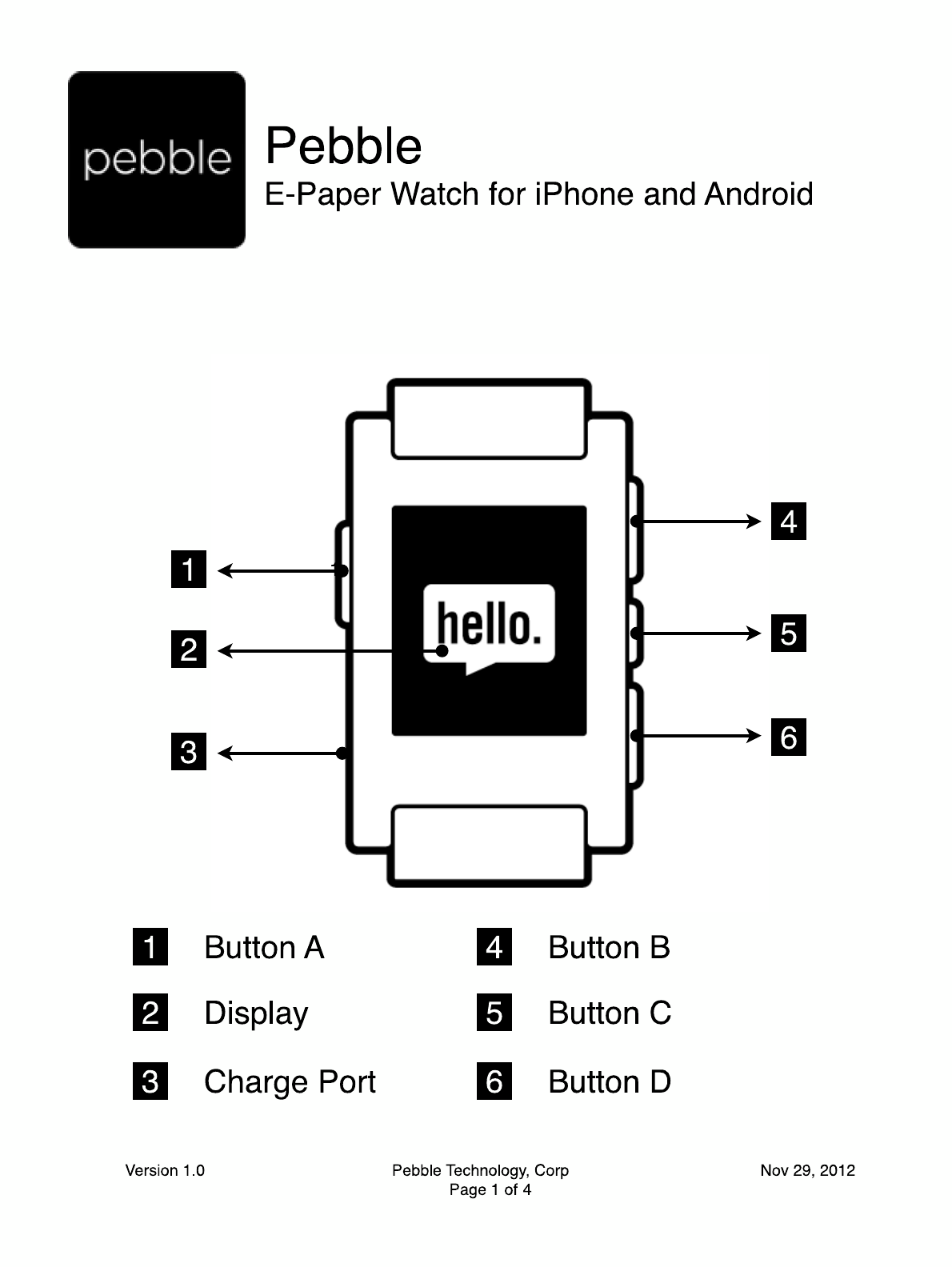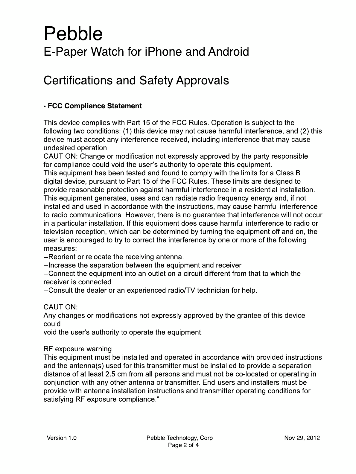 Pebble Technology PEBBLE-WATCHA Smartwatch User Manual WQ1A user manual 130826
