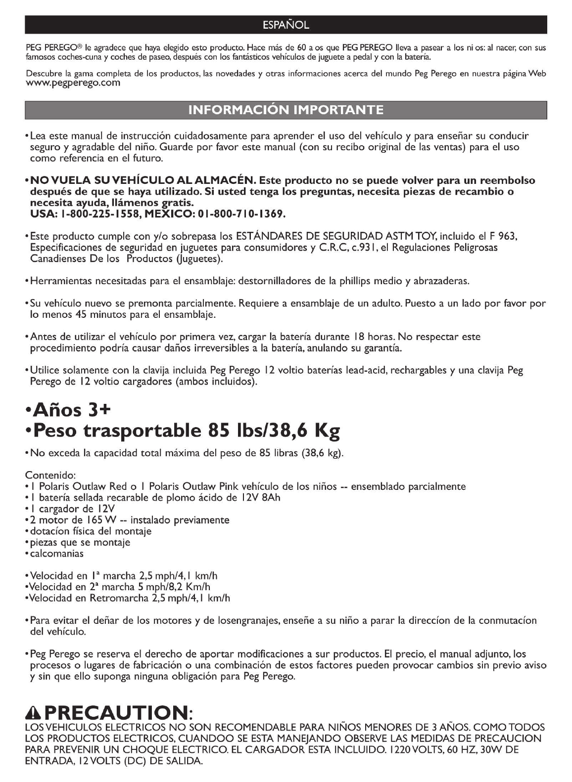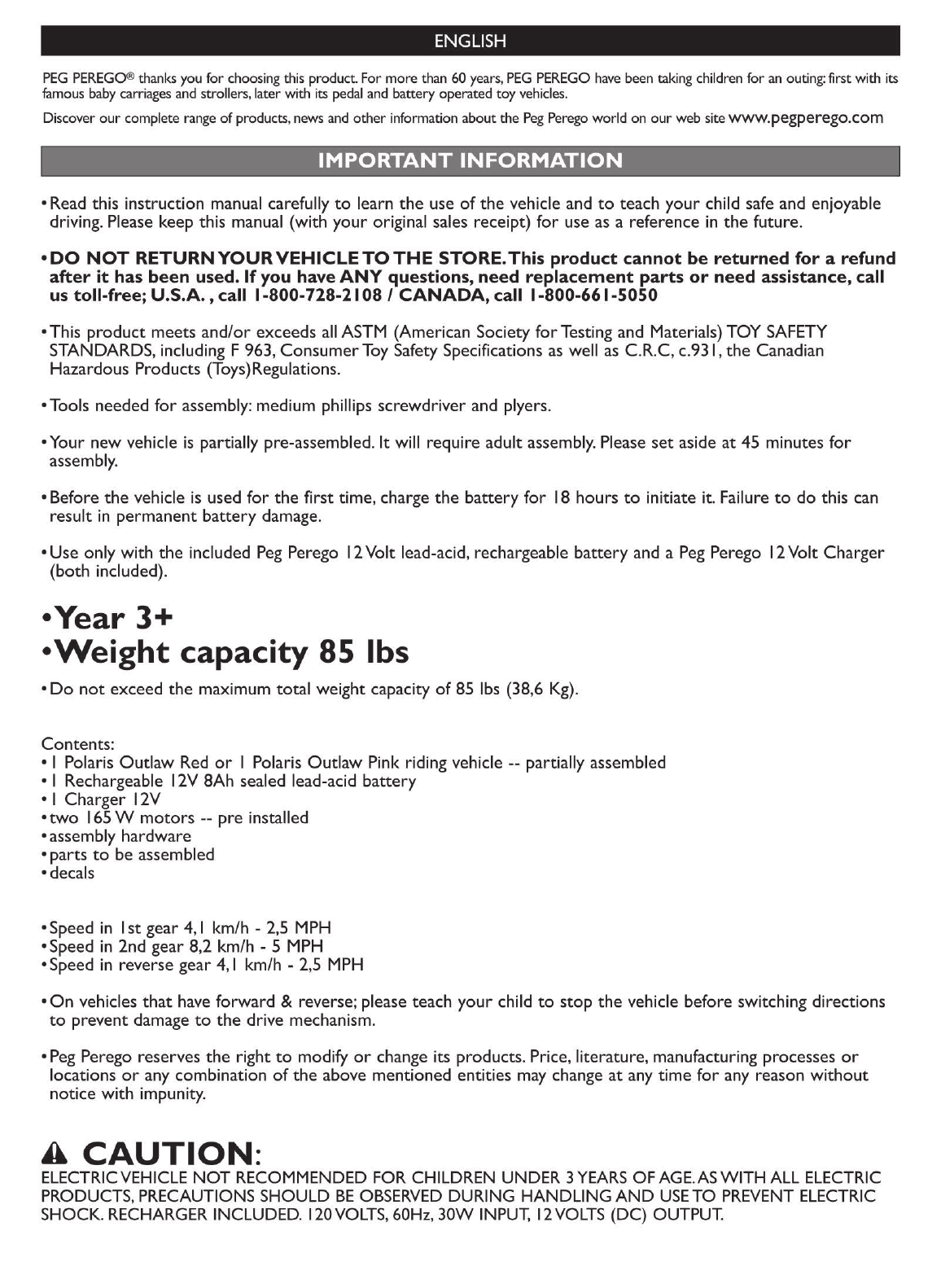 Peg Perego Polaris Outlaw Users Manual MultiPage PDF File