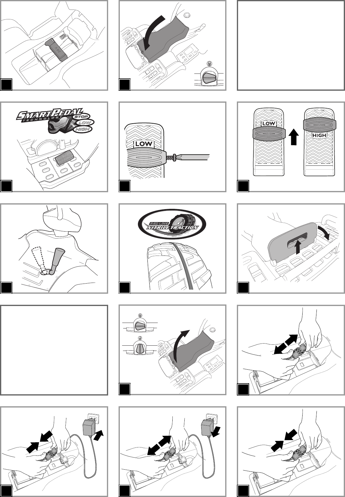 d’accélérateur. Enseigner à l’enfant à utiliser le véhicule correctement pour conduire en sécurité tout en s’amusant.