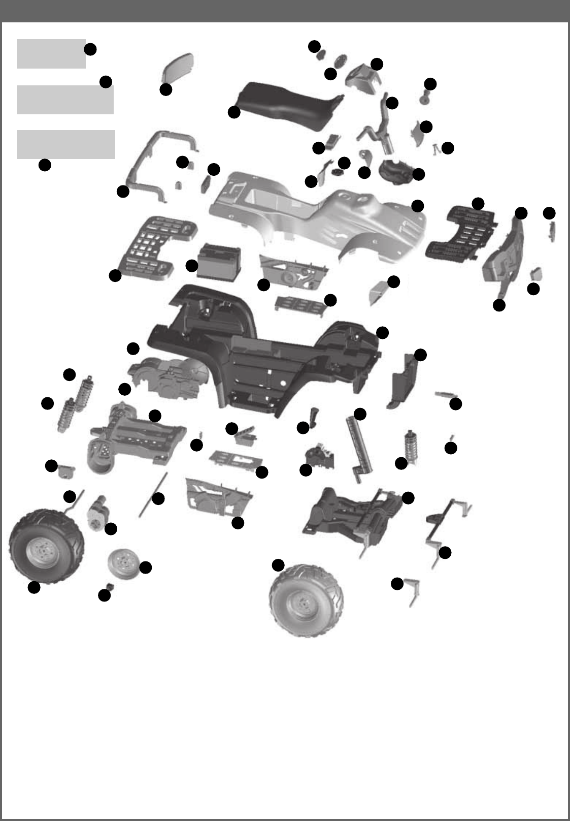 doivent par être utilisés. Pour les réparations, n’utiliser que des pièces de rechange d’origine PEG PEREGO.