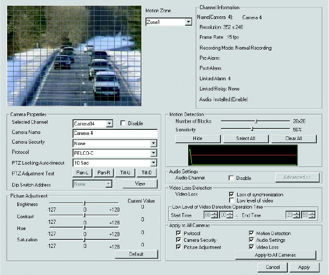 motion applications (preset scan, tour, and auto scan modes).