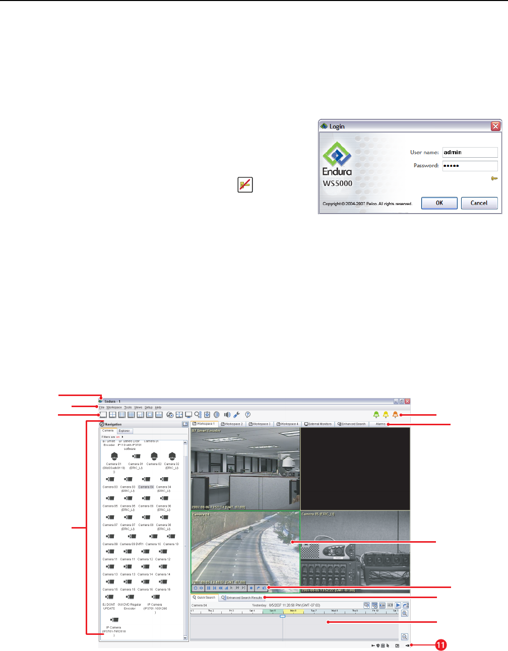 To start the application, double-click the Endura icon on the desktop. A login dialog box appears. If the system manager (SM5000) is online,