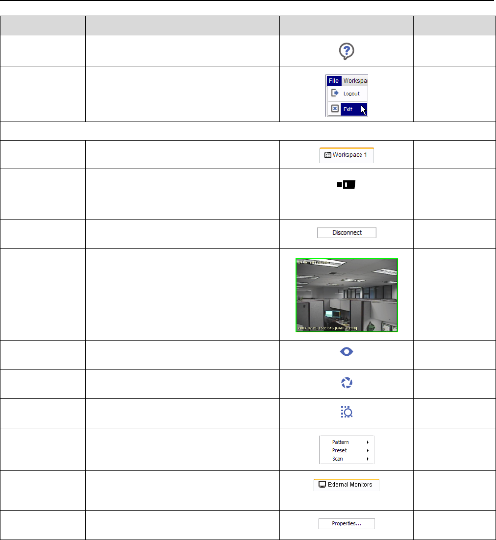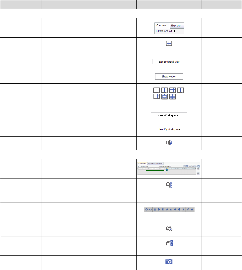 are automatically saved. You do not have to select the same cameras each time you log on. There are three specialized workspaces:
