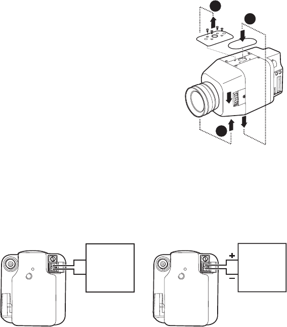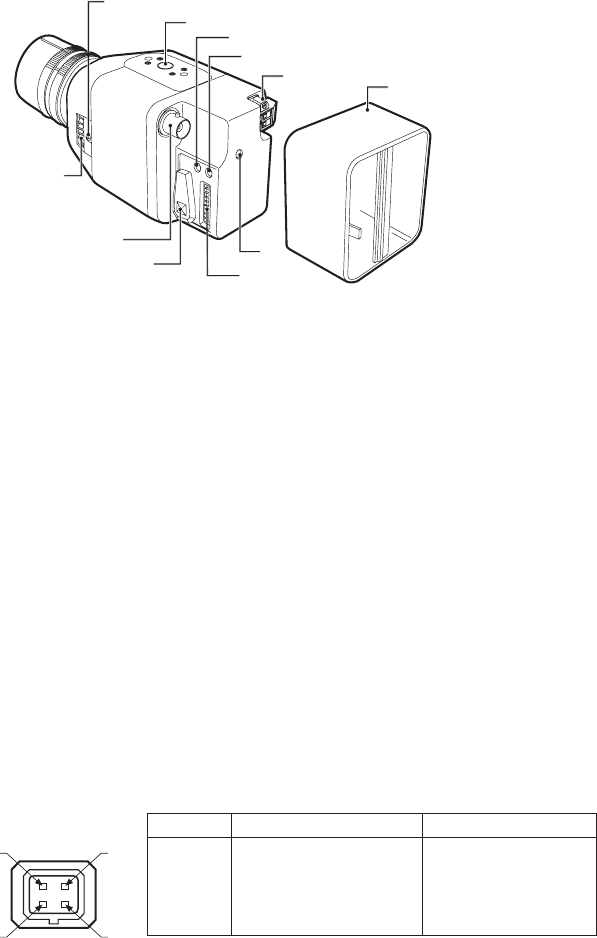 5. Connect the auto iris lens to the four-pin connector located on the side of the camera. Pin connec-