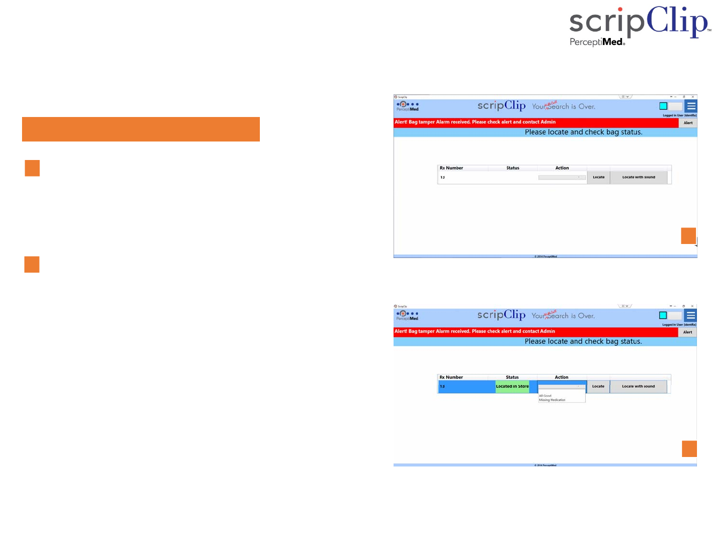 Solution:PutscripClipbackonpackageandreturntoshelf.Press“Locate”again.Retrievecorrect