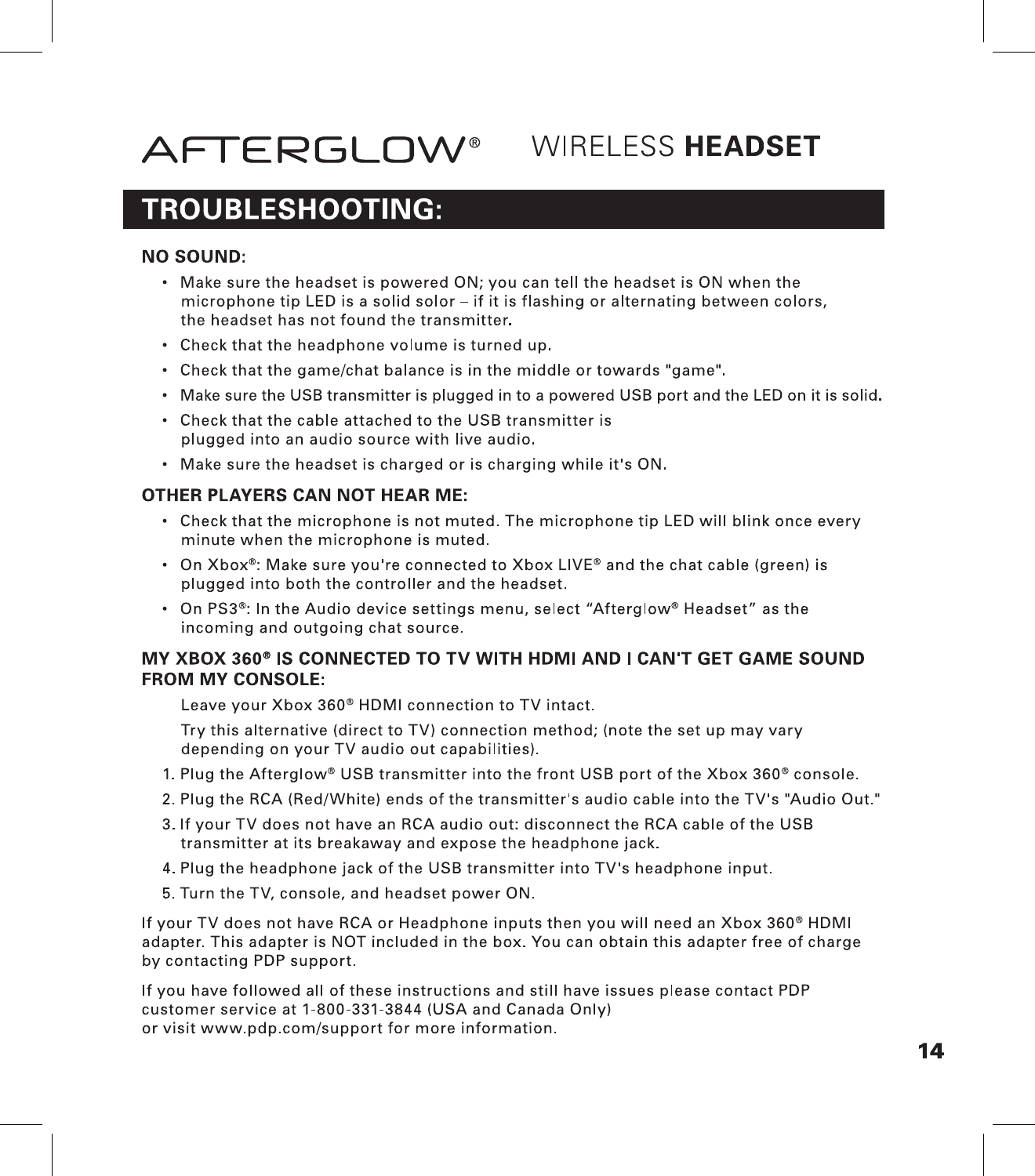 Performance Designed PL9929T Afterglow Universal/ XBOX360/ PS3 Wireless Dongle User Manual Afterglow Wireless Headset Manual pages