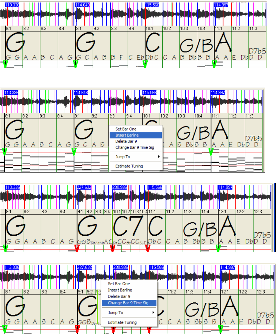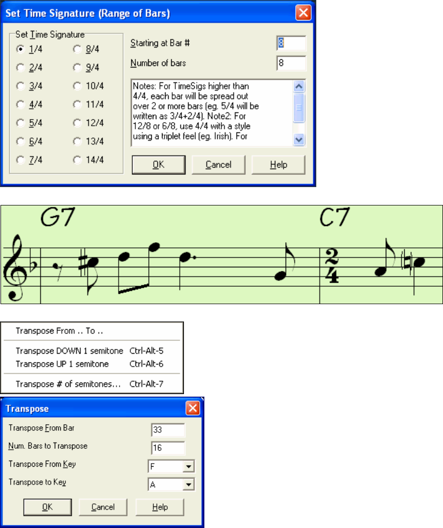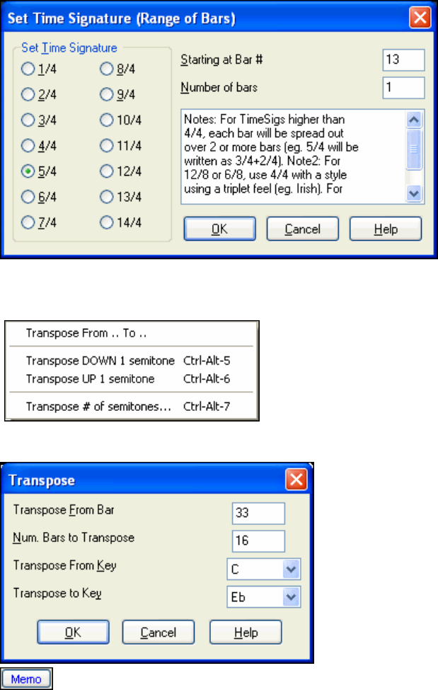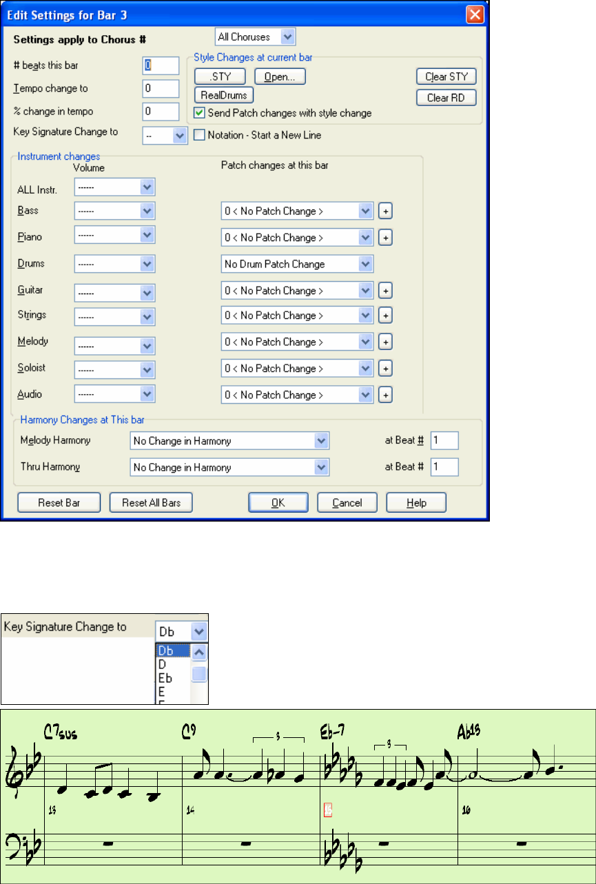 - The number of beats per bar, tempo changes, patch, style, and harmony changes can be made by selecting the Settings For Current Bar option on the Edit menu or by pressing F5 after you have selected a bar to edit.