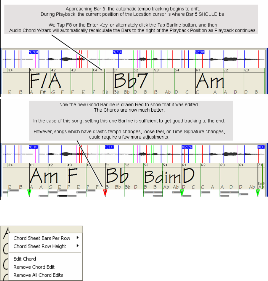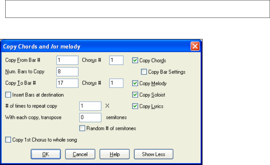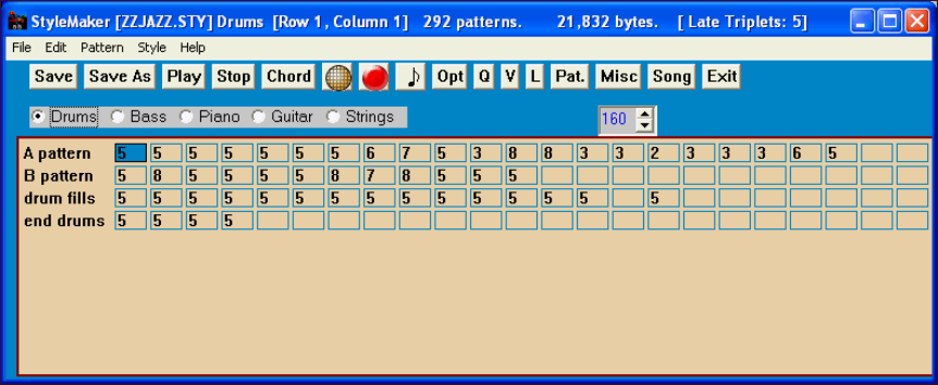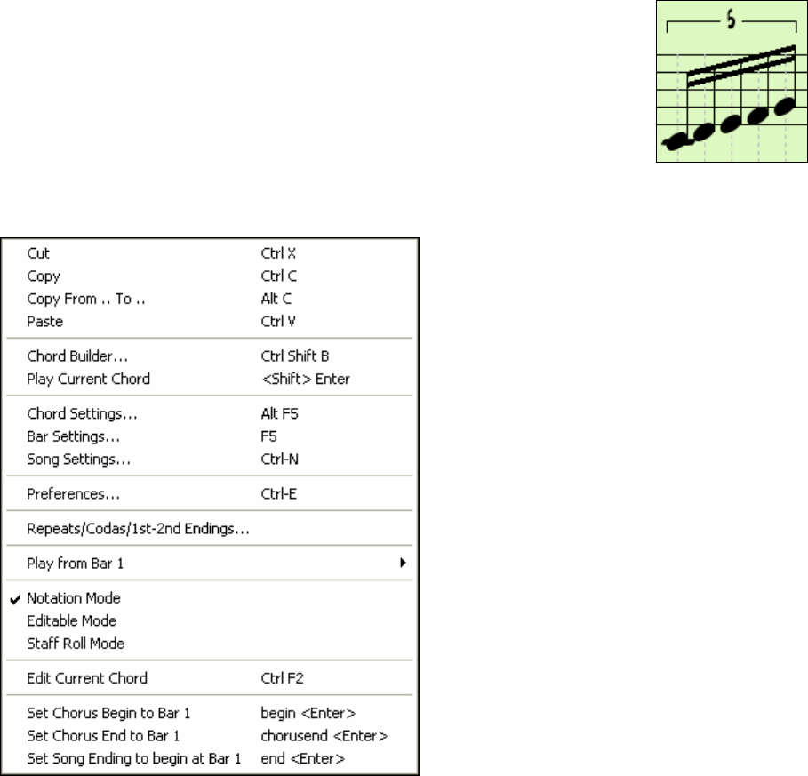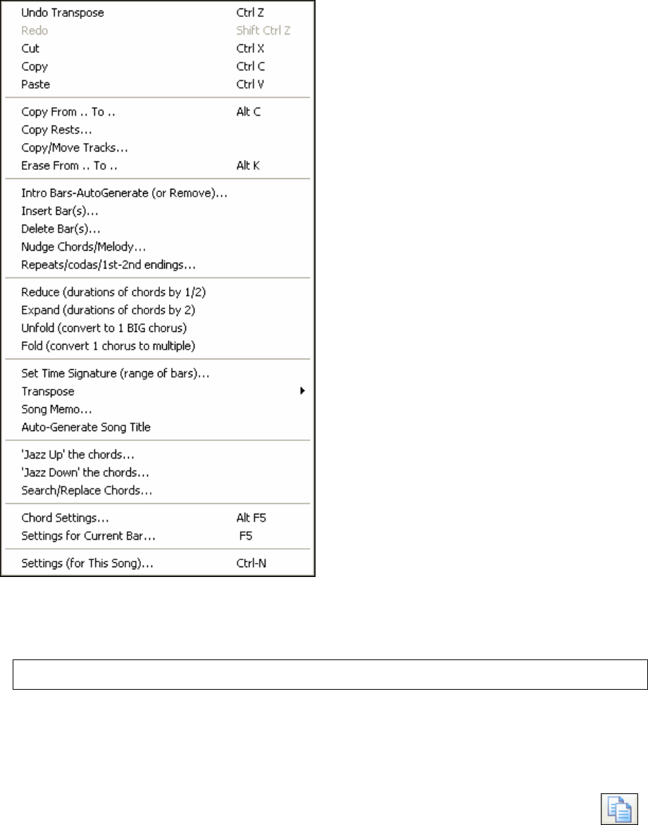 - The number of beats per bar, tempo changes, patch, style, and harmony changes can be made by selecting the Settings For Current Bar option on the Edit menu or by pressing F5 after you have selected a bar to edit.