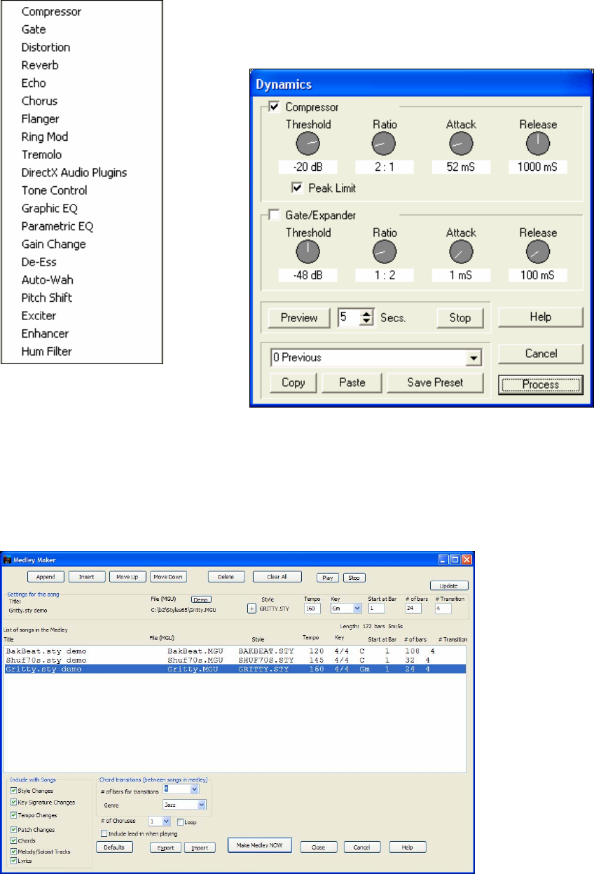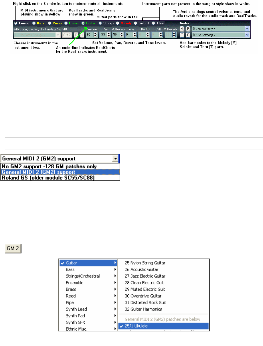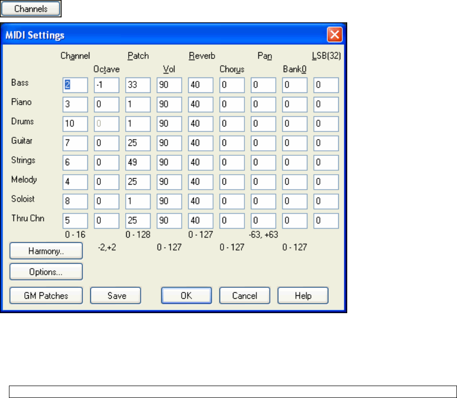 - Changing Volume, Panning, Reverb, Chorus, Bank