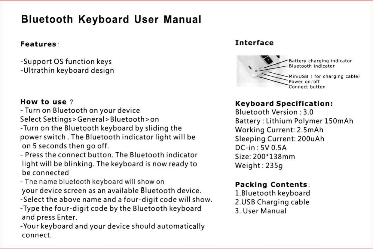 Phaeton Nice Electronic High tech HT-1302 Bluetooth Keyboard User Manual 11