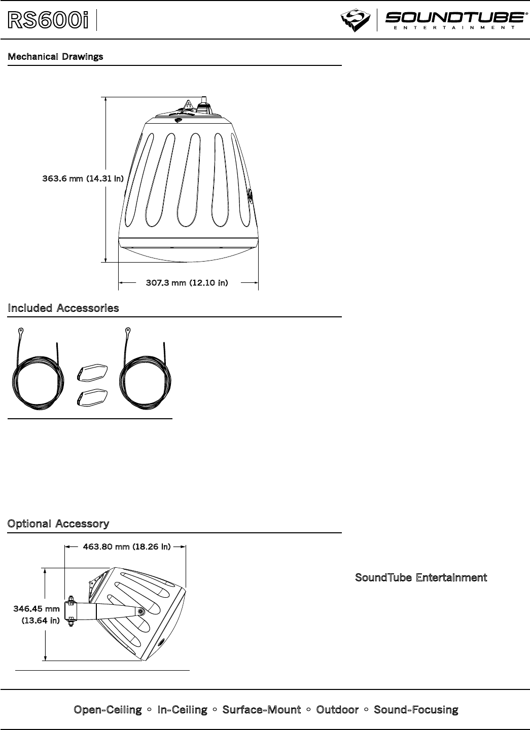 diameter. The RS600i shall include hanging