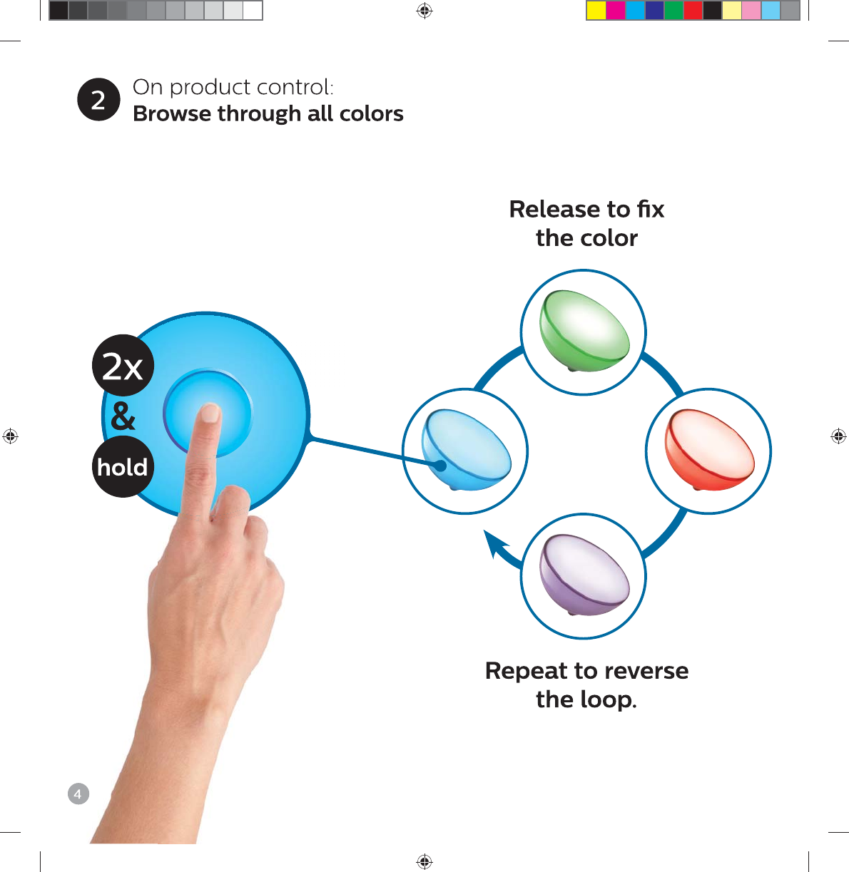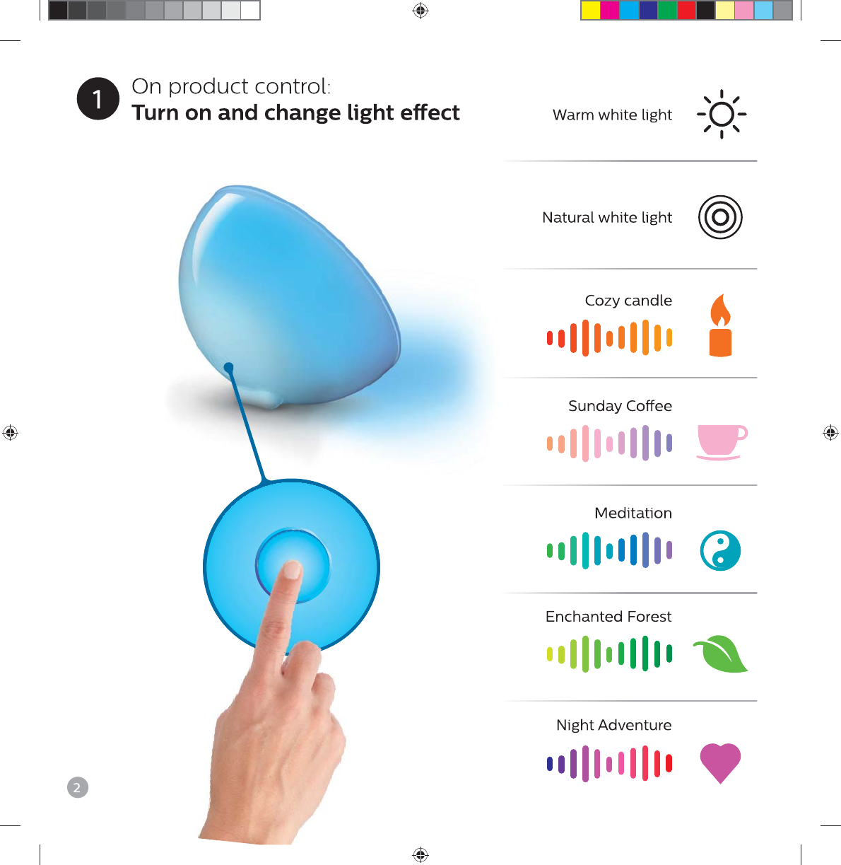 EN On product control: Turn on and change light effect