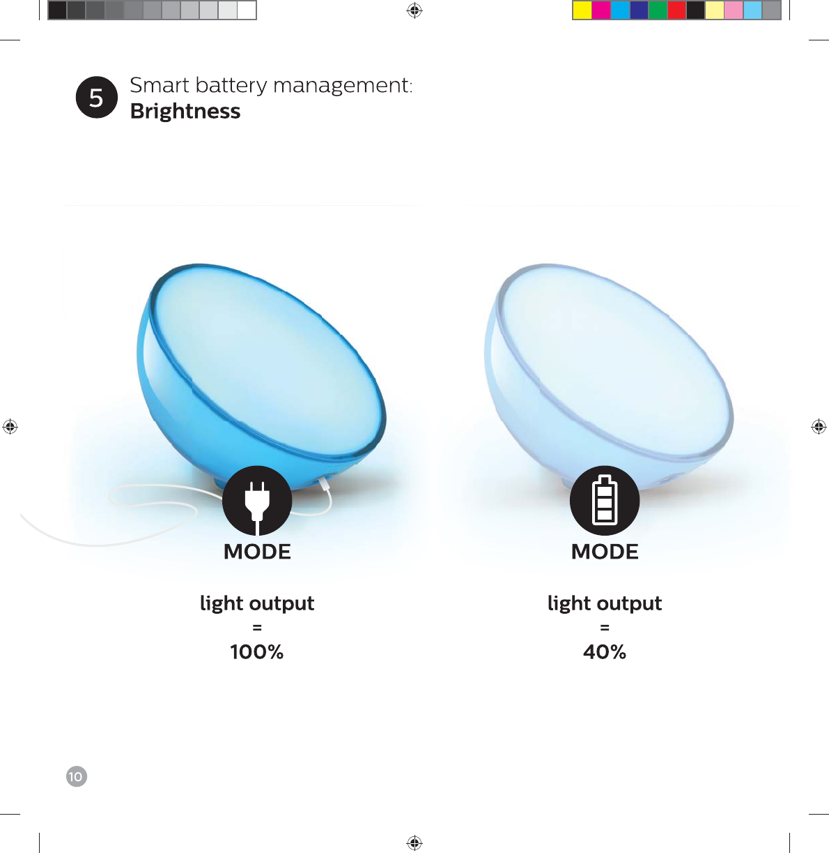 • Hue Go will switch off automatically after 2 hours in standby mode to save battery.