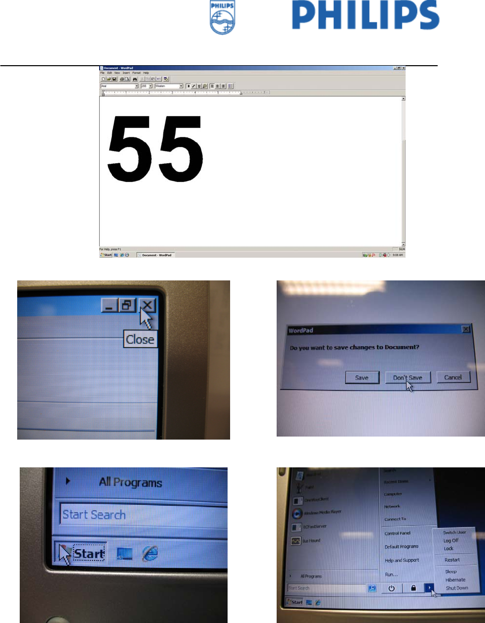 Picture 16: After testing, before shutdown the note book, close all the application software as click the “X” icon located at
