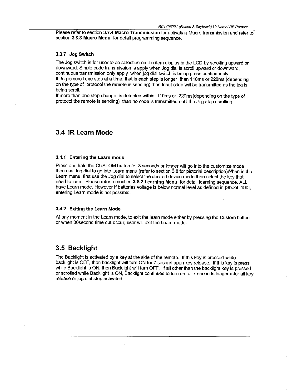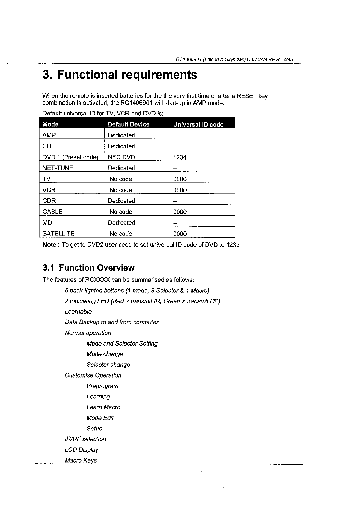 Philips Electronics Singapore RC140 RF Remote Control User Manual