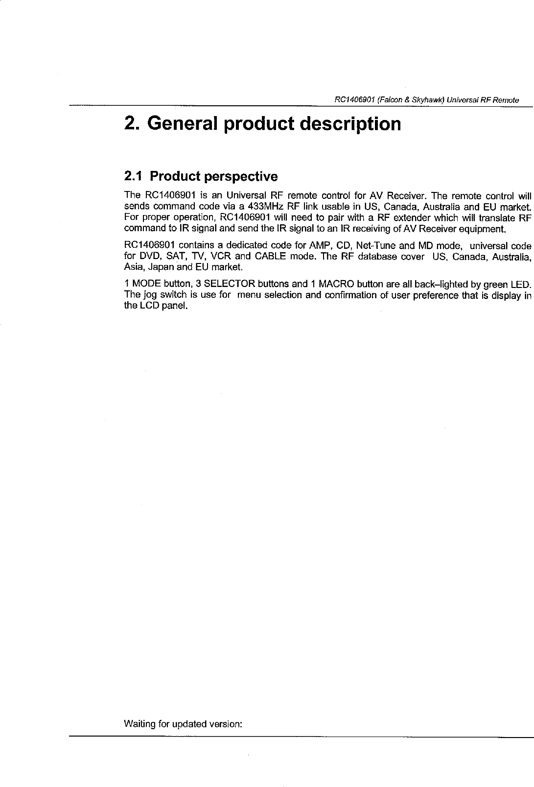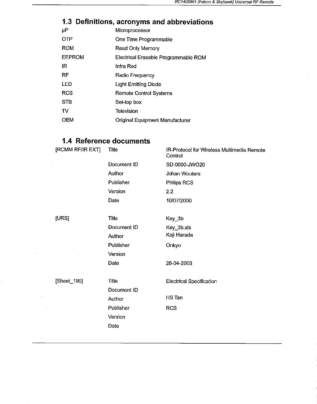 Philips Electronics Singapore Pte Ltd RF Remote Control