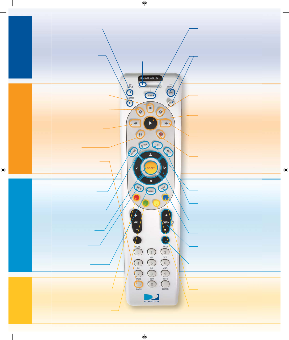 Use with mode switch to turn DIRECTV