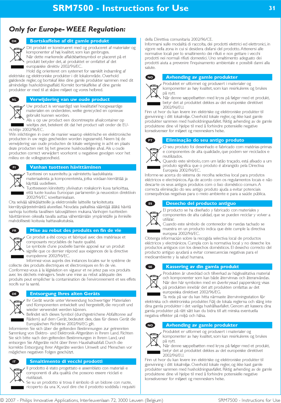 Philips Electronics Singapore Pte Ltd RF REMOTE CONTROL SRM7500 IFU EN v3