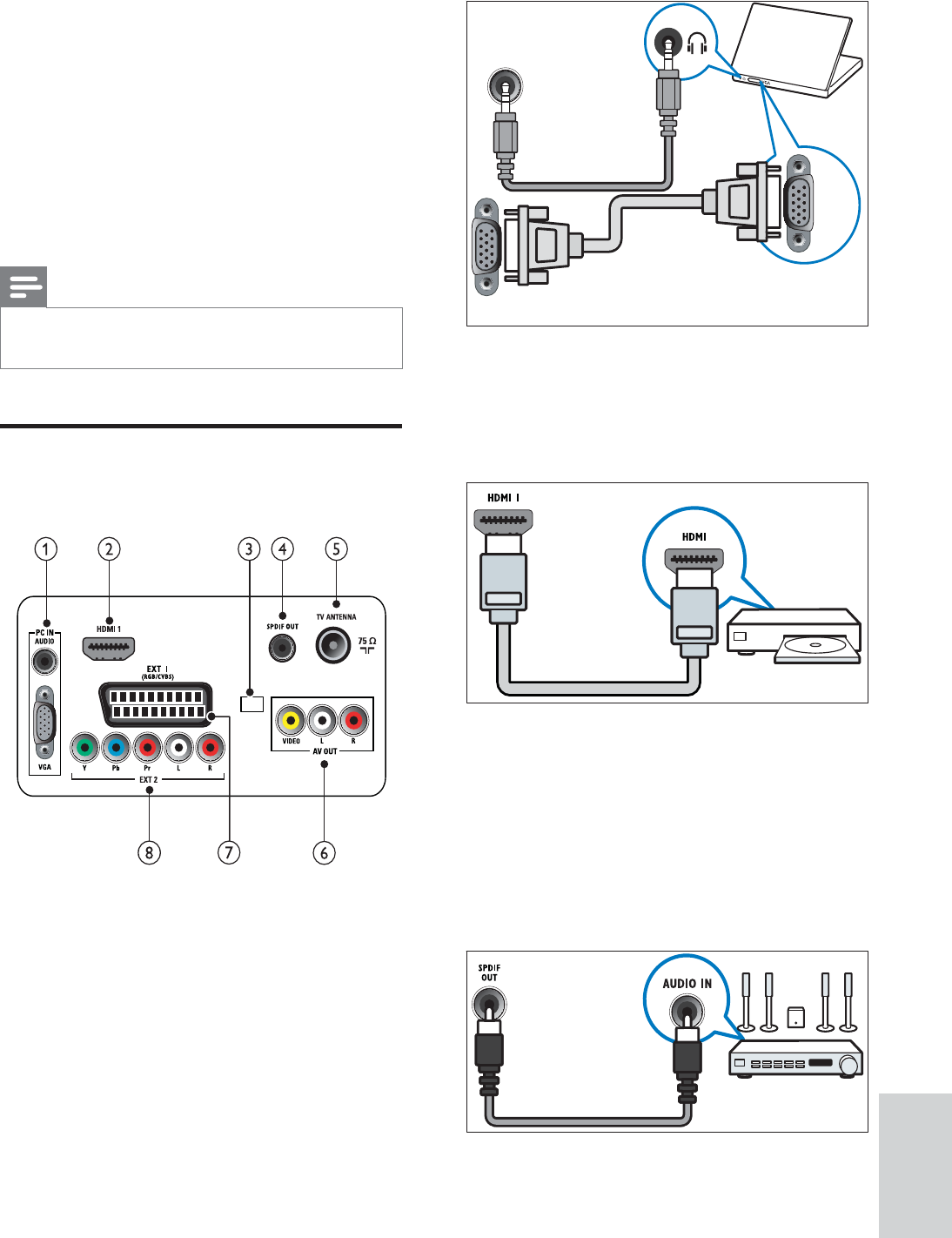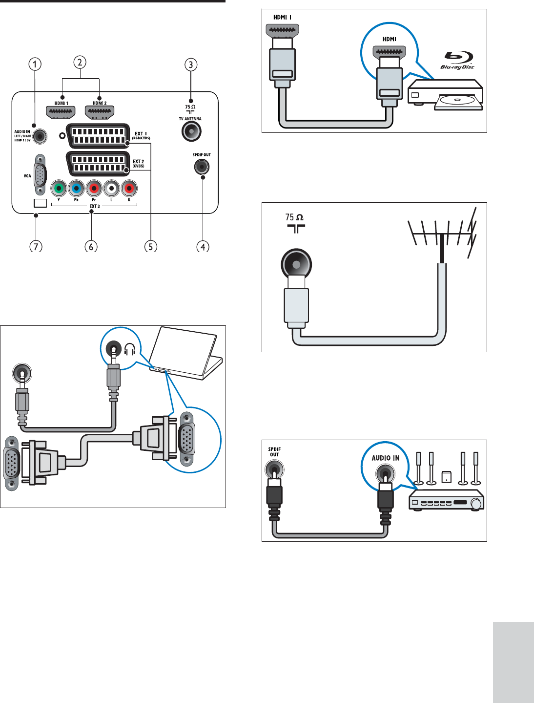 Aansluitingen achterkant voor TV van 26