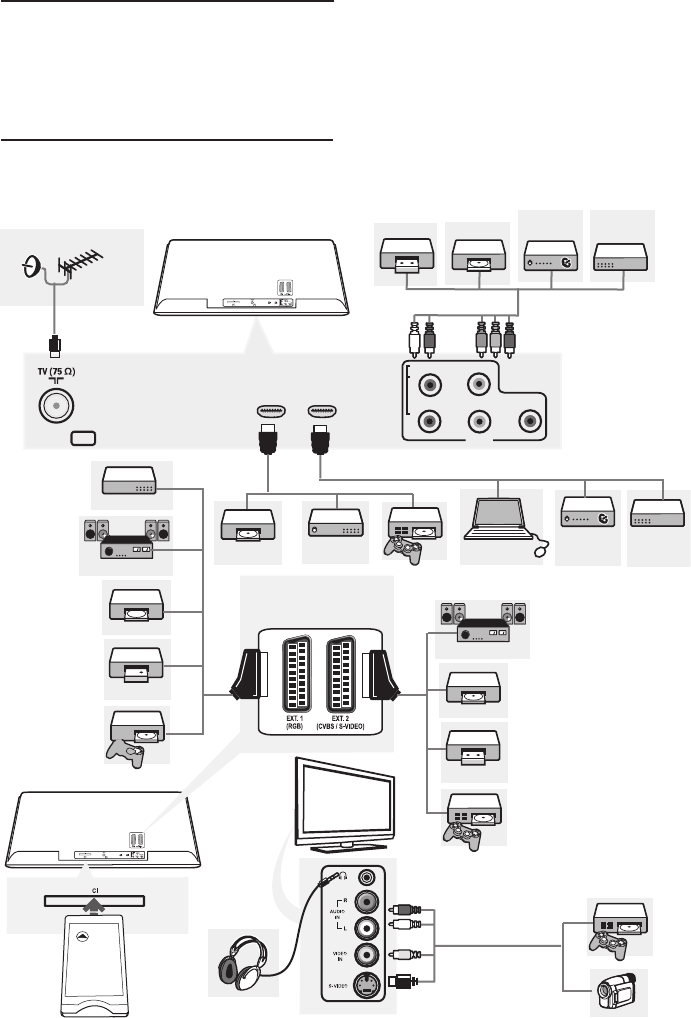 • Einige TV-Antennen müssen vom Fernsehgerät mit Strom